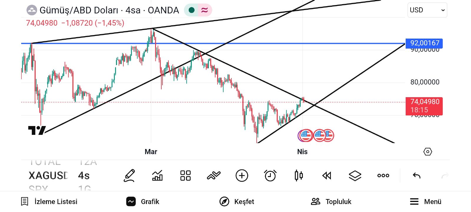 F30 ()61doları dip olarak görüyorsunuz yükseliş trendi içine girdimi diyorsunuz gümüş için
