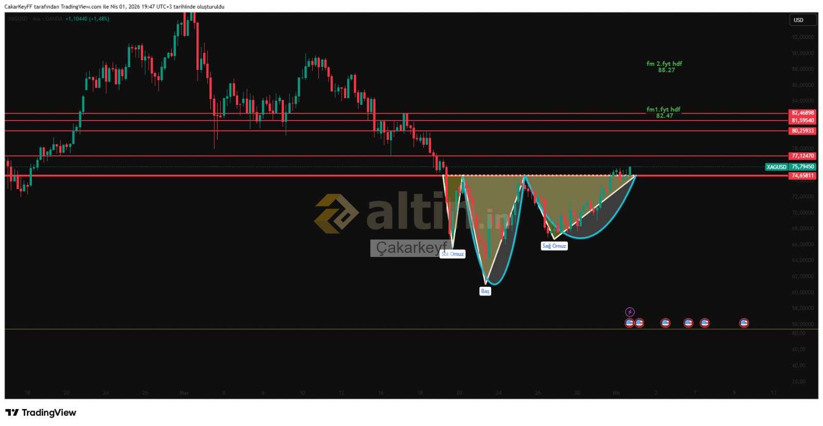 Çakarkeyf ()gümüş ons 74.65 üzeri kalıcılıkta fıyat hedeflerine gitmek ister
