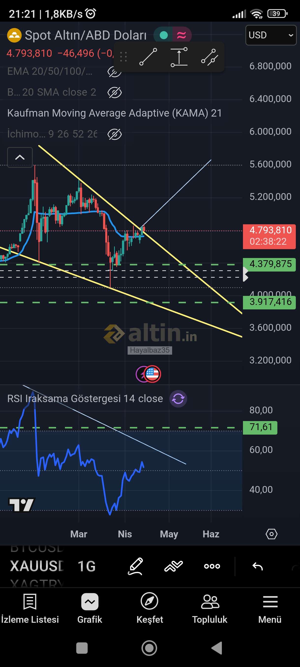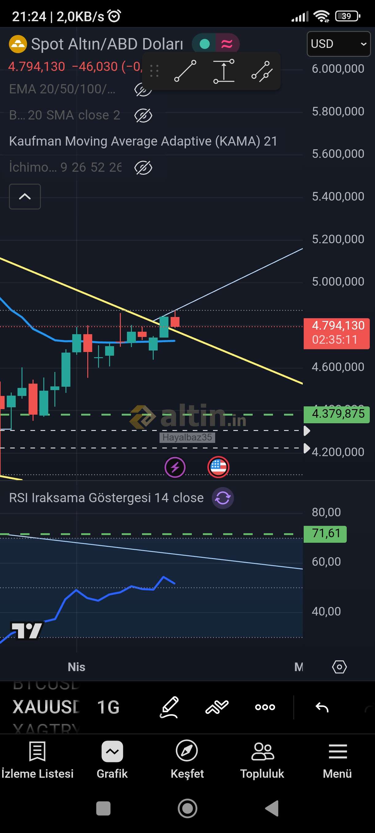 1) Altin.in'de yer alan içeriğin doğru ve/veya güncel olduğu hiçbir şekilde iddia veya garanti edilmemekte, hiçbir veri ve/veya paylaşım, yatırım danışmanlığı kapsamına girmemektedir. Sitenin içeriği referans alınarak yapılacak hiçbir işlemin doğuracağı maddi ve/veya manevi herhangi bir kayıptan altin.in sorumlu değildir. 2) Altin.in ziyaretiniz sırasında ip adresiniz ve bilgisayarınız aracılığıyla toplanabilen diğer veriler altin.in tarafından kayıt altında tutulmaktadır. 3) Altin.in tüm içeriği önceden uyarmaksızın değiştirme, kaldırma ve yenilerini ekleme hakkına sahiptir. 4) Altin.in gerekli gördüğü taktirde üyelerin ip numaralarını engelleme hakkına sahiptir. 5) Altin.in yorumlar bölümünde ki içerik, görsel, yorum ve paylaşımlar (tarafımızdan onaylanmaksızın) kullanıcılar tarafından kendi iradeleri ile paylaşılmaktadır. Bu içeriklerden dolayı doğabilecek hukuksal konulardan içeriği oluşturan kullanıcı sorumlu olacaktır. 6) Altin.in'in tüm kullanıcıları 5651 Sayılı Kanunun 8. ile 9. Maddesine ve TCK'nın 125. maddesine göre yaptıkları paylaşımlardan kendileri sorumludur. Bu bağlamda altin.in hukuksal haklarını saklı tutar. 7) Bu uyarılar önceden haber verilmeksizin değişkenlik gösterebilir takibi kullanıcılarımızın sorumluluğundadır.