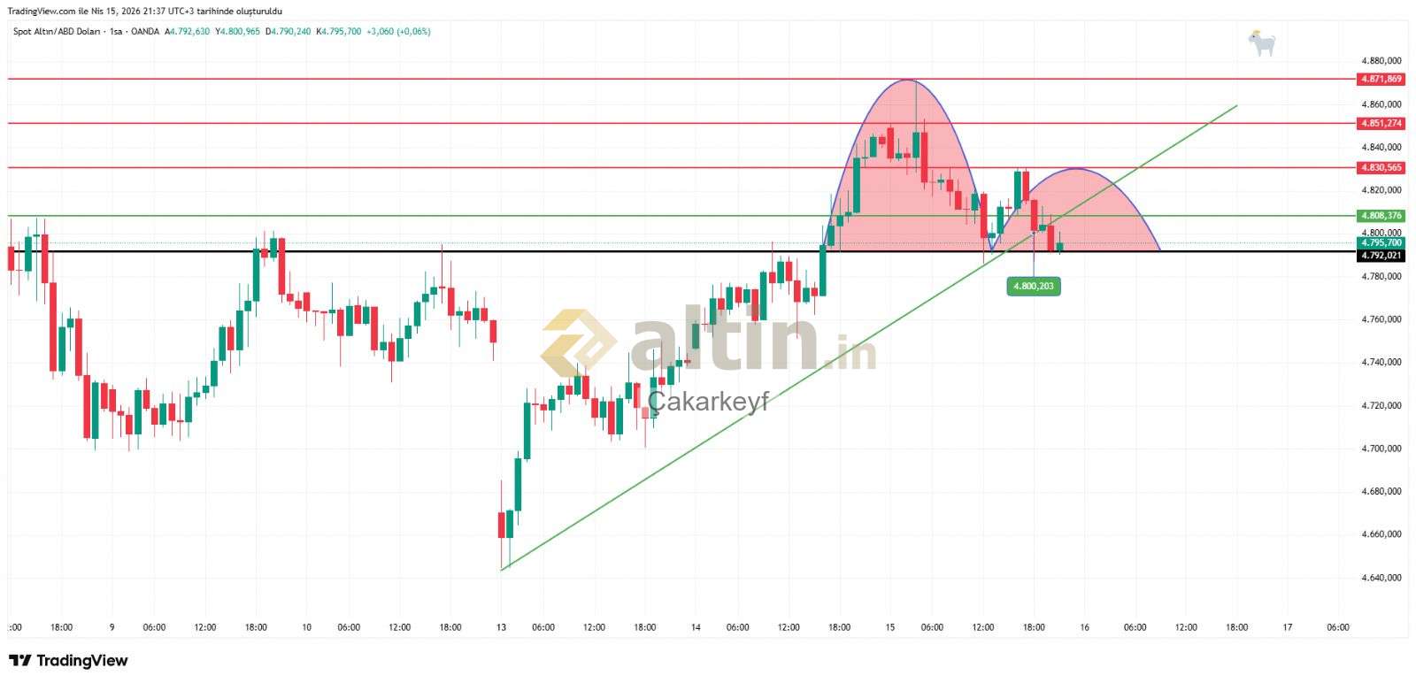 Çakarkeyf ()kısa vade yukselen trend desteği 4800 e tekabul ediyor kırılımları takıp etmek için önemli