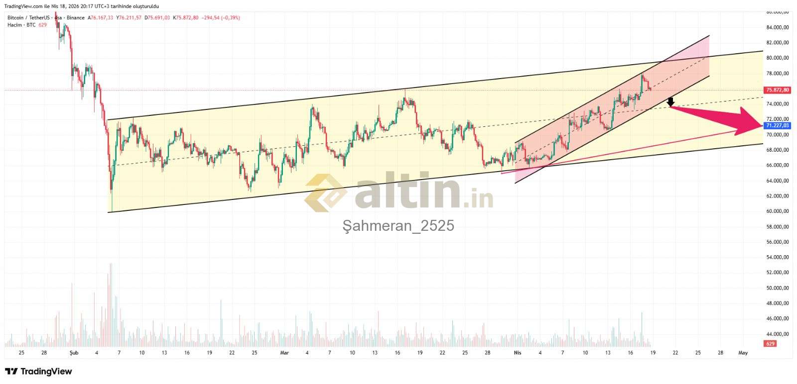 Şahmeran_2525 ()kısad zaten 75700 Altın a sarkmazsa dönüp stop alacak sarkarsa 74560 a anlık iğne atar