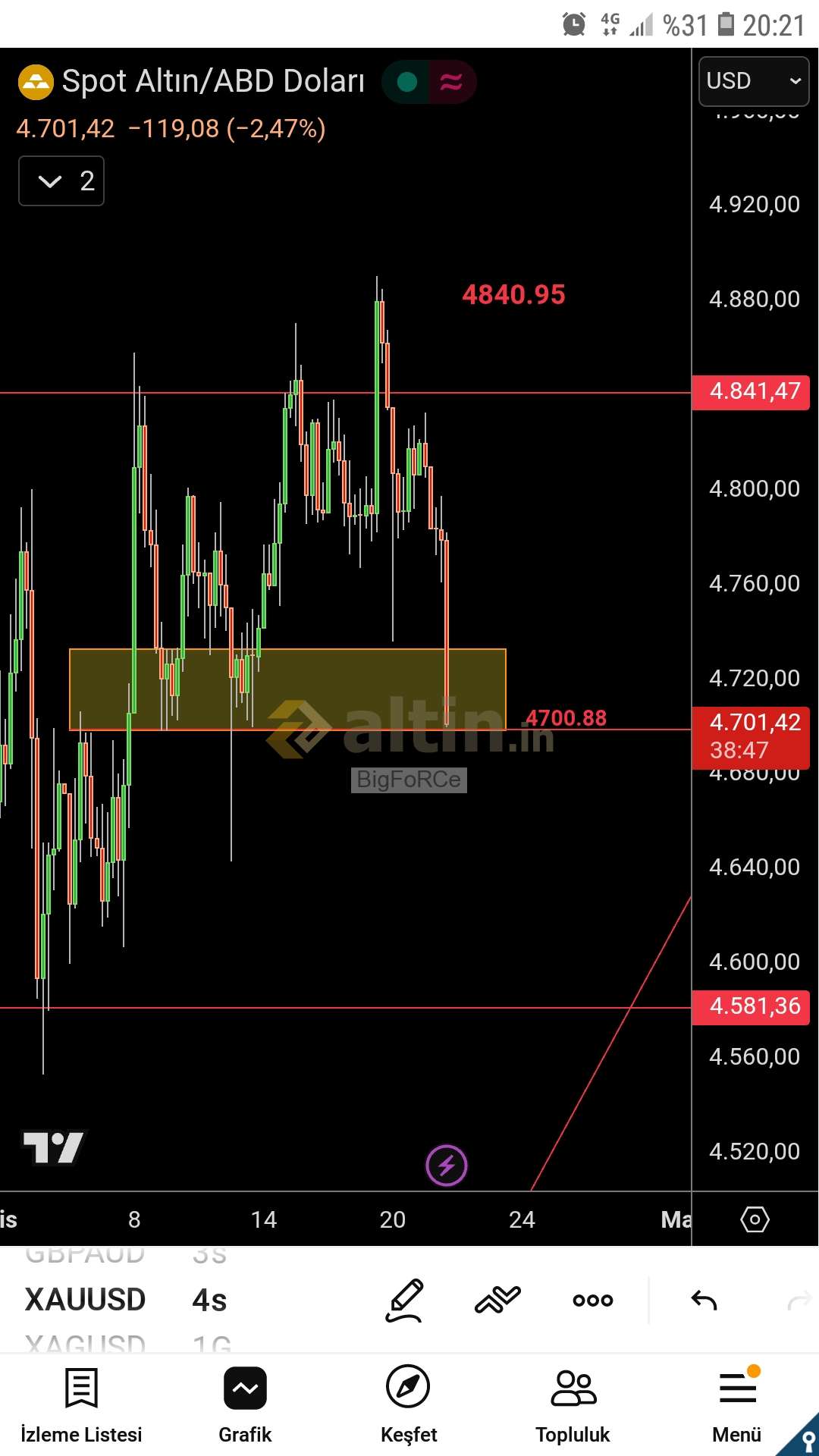 BigFoRCe ()4700.88 seviyesi Altın da 4h kapatmadan ben aşağıda ki seviyeyi konuşmam:)