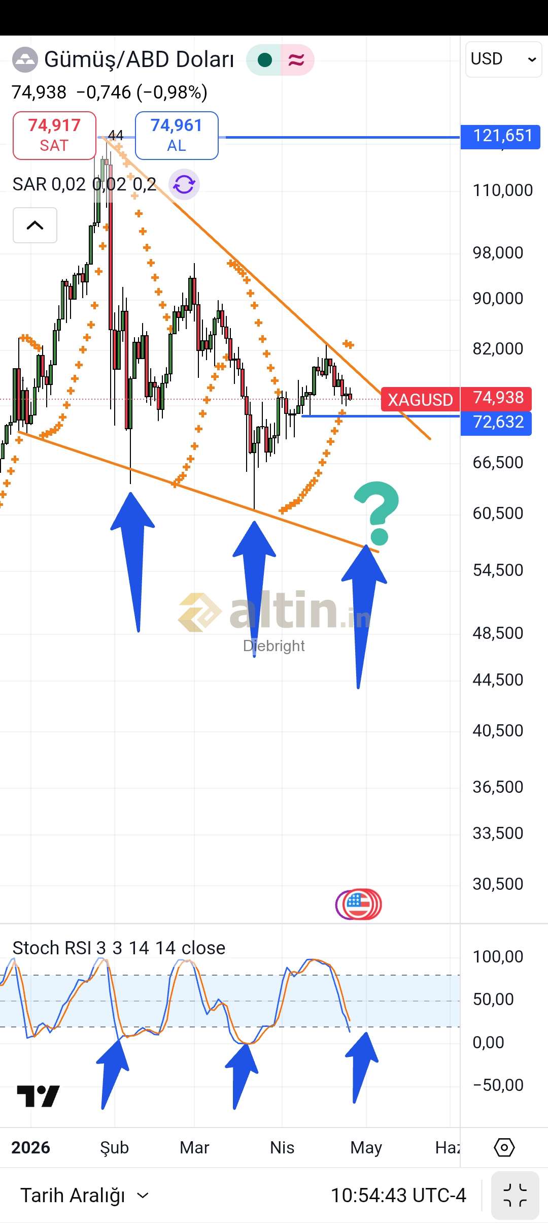 Asiii__ ()Ons olarak snırım. Şuan dünde yazdım 74.60__73.80gün kapanışları vs. Kırılmadıkça tepki bekliyoruz bakalım altınonstada 4620__4580üzeri durdukça oyalanmada yeterki aşağı bu rakamları kırılmasın dirençleri dener inşallah ytd... Geçenler 83lere dyanmış aslında kısada hedeflerinde vardı fakat al- sat yapamayan daha gider diye parçalıda olsa csaret edilse geri saçmalar beklenip eklense moral olurda ypamayınca beklemek kalıyor... Hayırlısı inşallah tez zamanda kurtulursun... @Asiii__