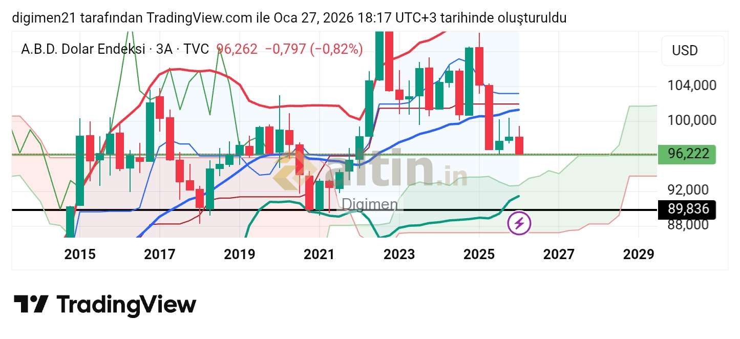 Digimen ()3A 3aylik ilk Çeyrek dönemi dxy grafigi, 96200 altına düşerse ki düşecek önceki döngüler grafikte bakın, 89000 e kadar, mart sonuna kadar düşüş devam eder, buda euro ve parite ye ve kriptolara güzel hareketler getirir... takip edin.