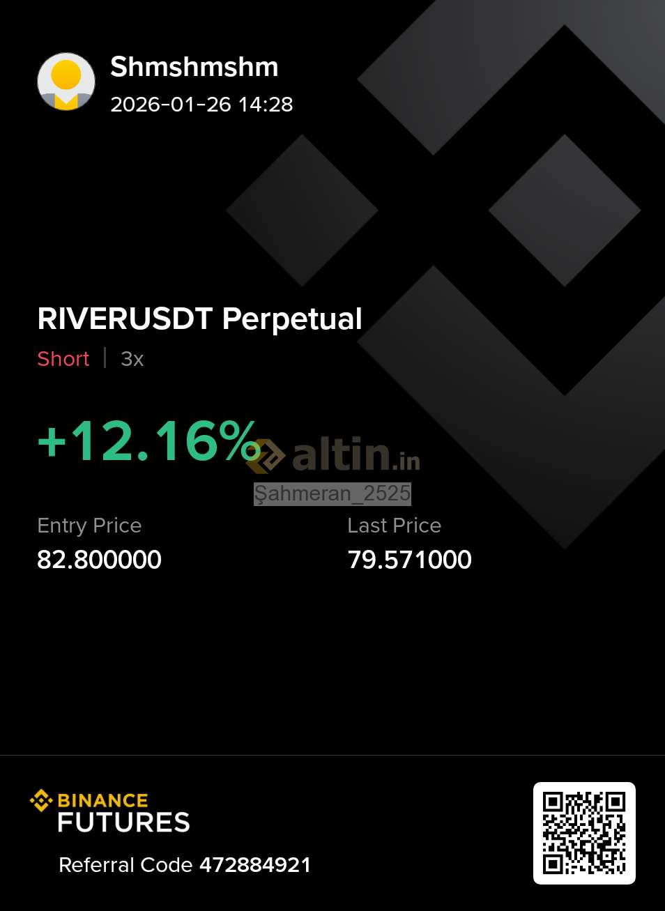 Klas_Yatırımcı ()Binance trden destek parasını yetiştiremedim gece 80e vurmuş likit oldum yoksa kolay kolay bırakmam 48 saat kuralı getirmişler