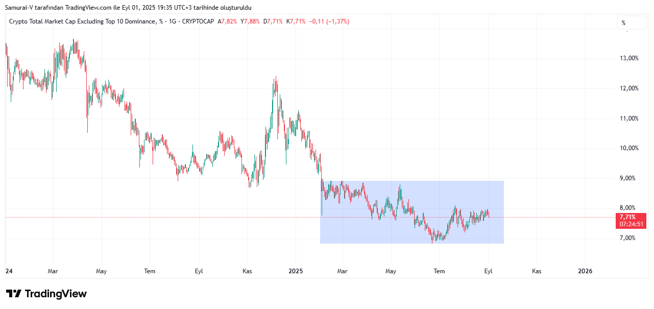 Bizim asıl sıkıntımız bu işte bence . 7 aydır bu kapana kısıldık çıkmıyoruz. Halbuki BTc çok yüksek seviyede , usdt.d diplere yakın , total 3 büyük majorler sayesinde hala güçlü , ama bu kafesten çıkamıyoruz şimdilik maalesef.
