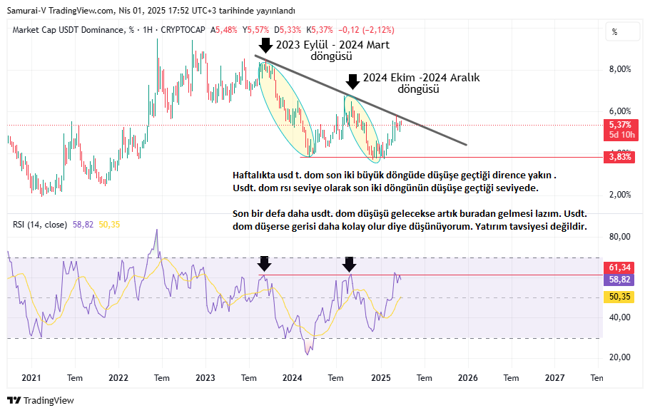 Müdür valla biz sistem kurbanı olduk, 16 k da 40 k da , 50 k da hep buradayım. Bizim şansızlığımız 2021 boğasını yaşayanlar kadar şanslı olmamız oldu. Çok uğraştırdılar . Artık usdt. dom son bir dalış yapmasını ve beraberinde btc. domu aşağı çekmesini beklemekten başka çare kalmadı. Teşekkür derim.