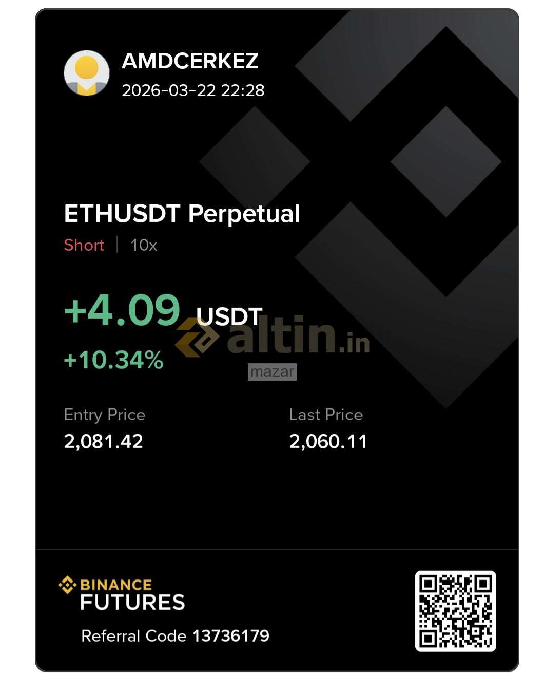 mazar ()dün akşam ETH de açtığım short pozisyonun