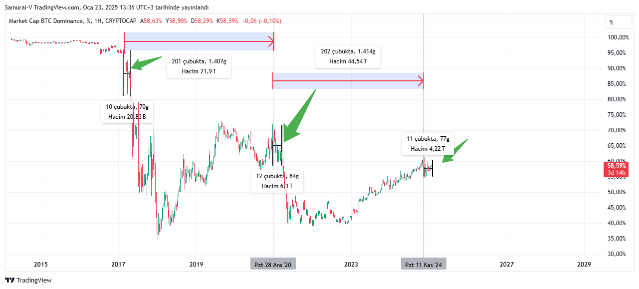 Bu btc dom neden bu kadar direniyor düşmemeye . Dar bir alanda sıkışma üçgeni oluştu . Umarım üçgeni aşağı kırar.