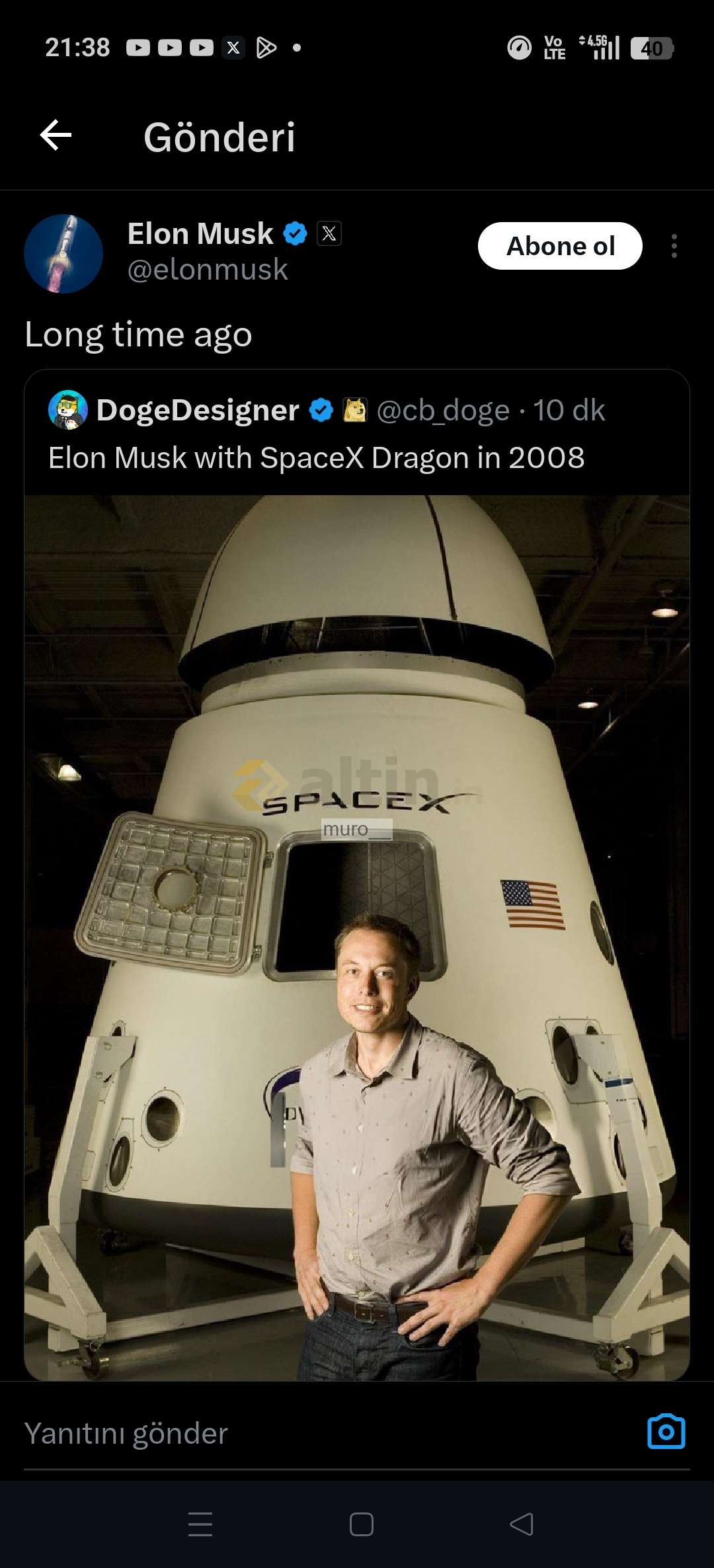 Kzılhafiye1 ()Elon da biliyor zati bu yükselişi bunlar rast gele açıklama yapmazlar yükseliş başlama arefesinde açıklamayı yapar yükselişi kendilerine mal ederler ama açıklama olsada olmasada zati trend yönü belli bunlar reklam kokan hareketler