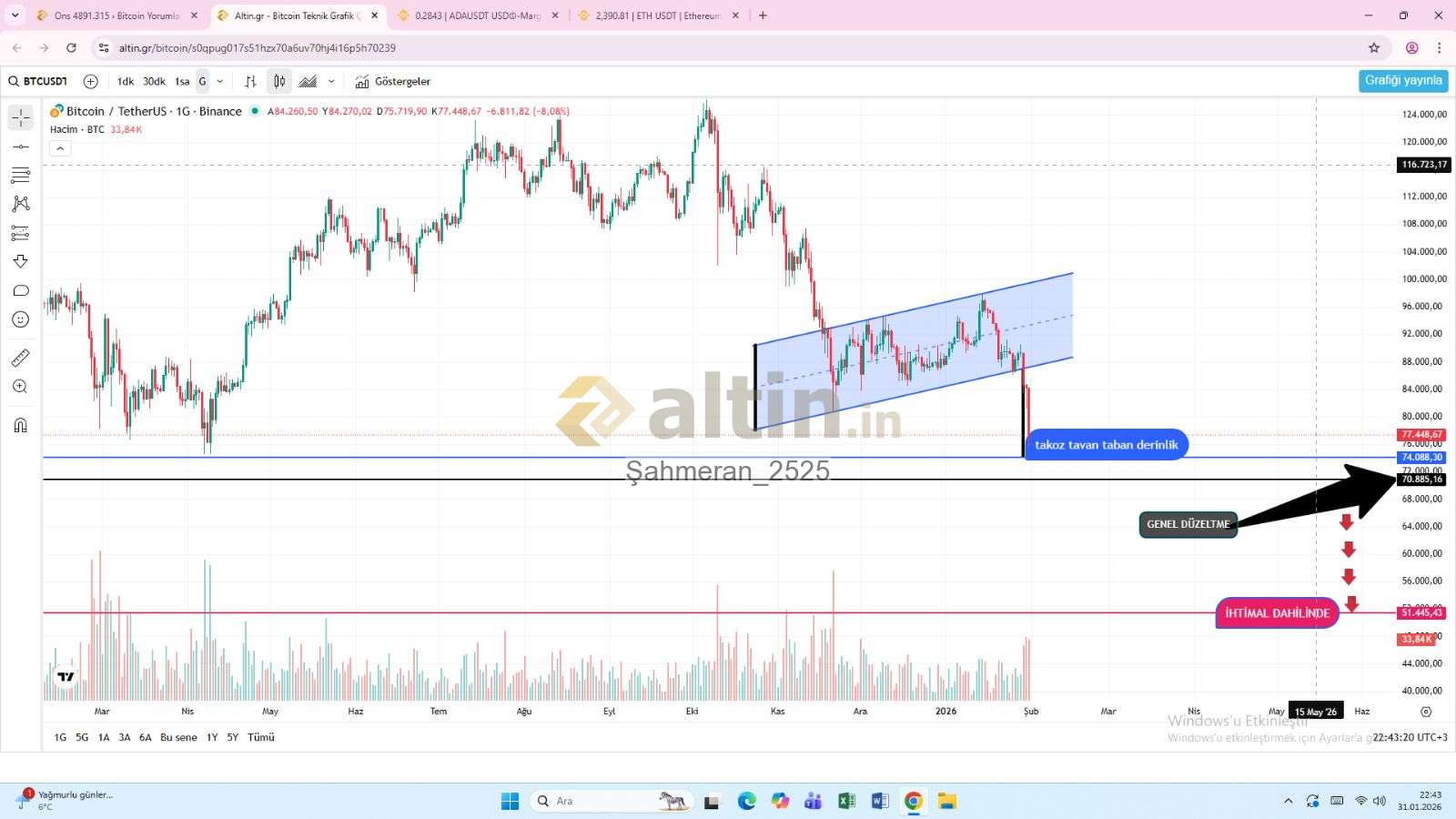 16paramıknatısı ()Eth hiç takibimde deyil hocam b t c yi bir arkdaşım için analiz etmiştim sayfamda uzun vade bir grafik bar zirvedeyken uyarmıştım dinleyen oldumu bilmiyorum