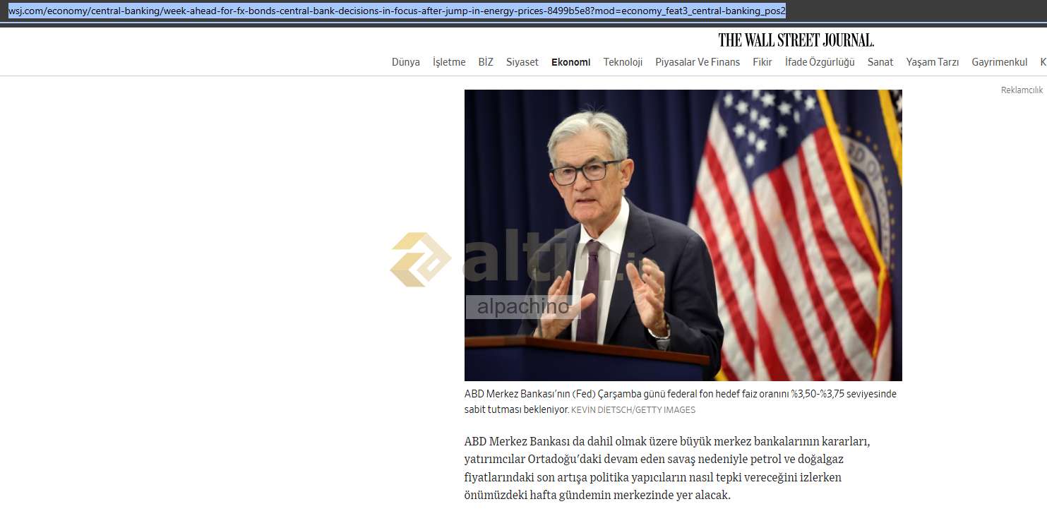 alpachino ()Orta Doğu grilimlerinin yol açtığı ptrol ve doğlgaz fyatlarındaki kskin artışın ardından yükselen enflsyon endişeleriyle mücadele eden yetkililer, 16 Mart 2026 haftasında (Fed), Avrpa Mrkez Bakası ve diğer merkez bankalarının kararlarıyla gündemde olacak.fed fayiz oranlarını %3,50- %3,75 aralığında tutması beklenirken, artan enrji maliyetleri kresel fayiz beklentilerinin yeniden fyatlanmasına, thvil getirilerinin yükselmesine ve stagflasyon riysklerine yeniden odaklanılmasına yol açıyor.