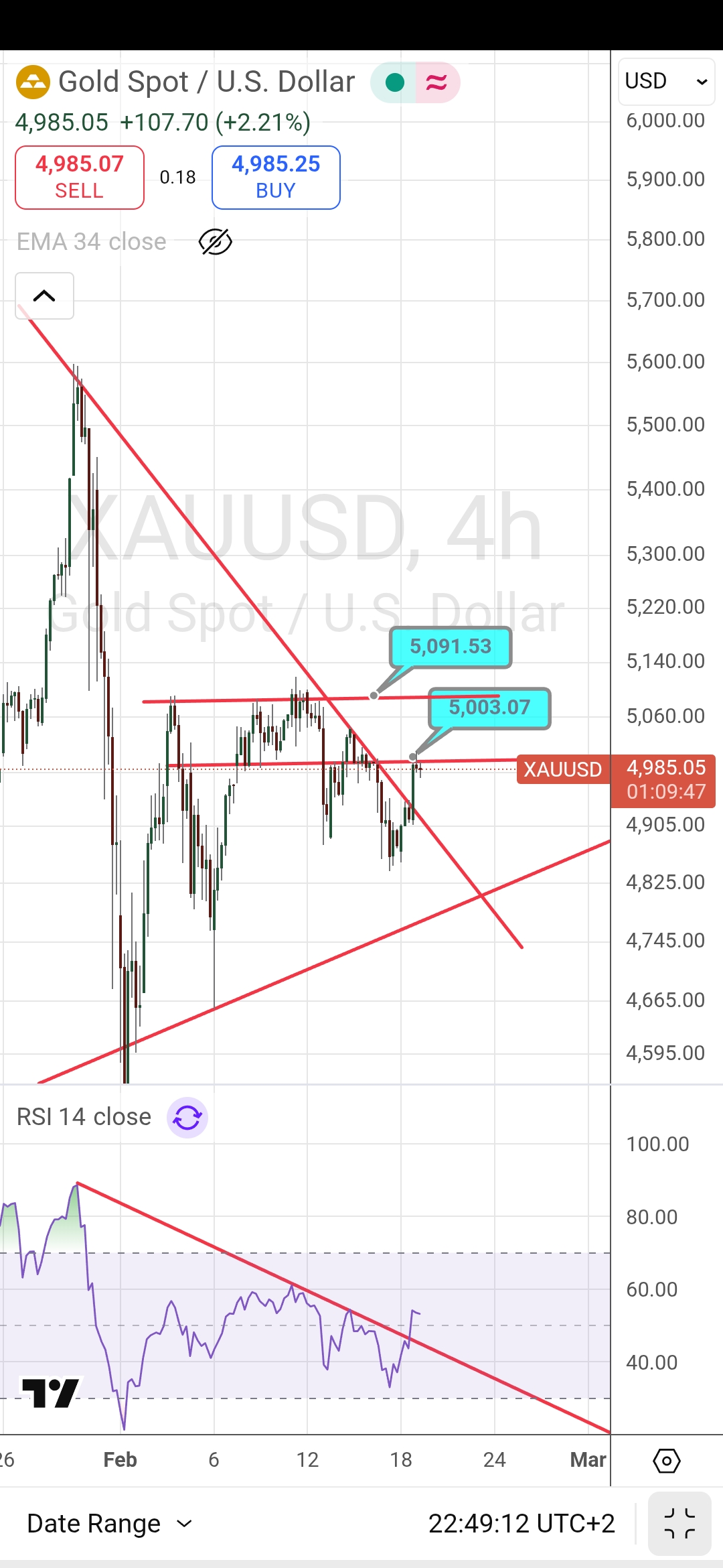 Altın düşenı kırdı. Direnclerini grafikte gösterdim. Özellikle 5090 direncini geçerse yükseliş ciddi ivmelenir.