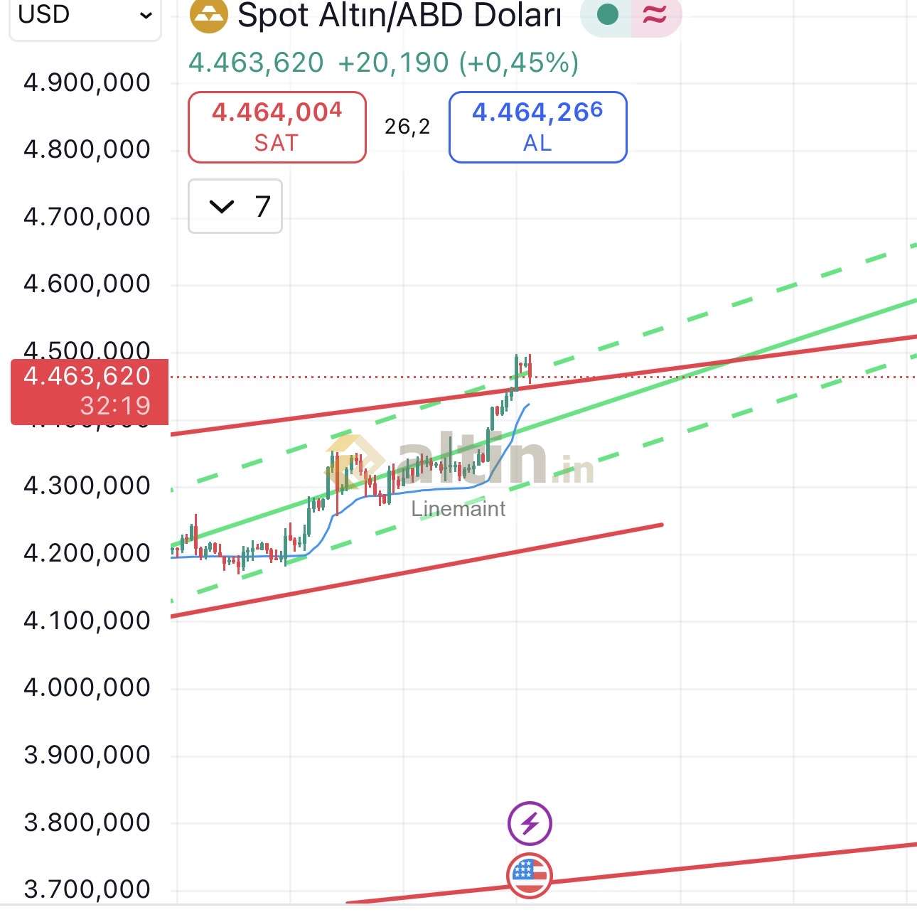 4.400 - 4420 USD Psikolojik eşik; kırılırsa 4.450–4.500 USD gibi yeni tarihi zirve hedeflenebilir. :)