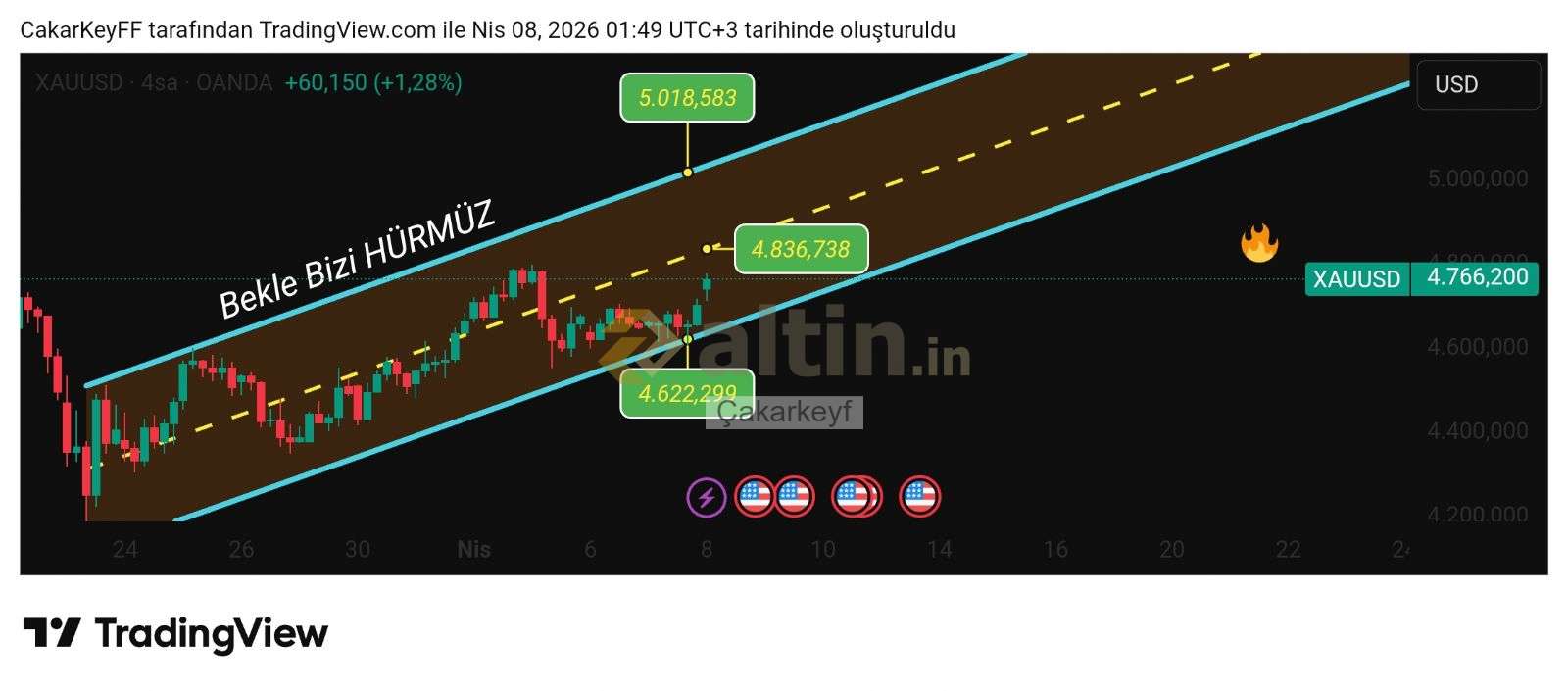 Elinize sağlık kıymetli hocam, sanki kanalı çok hızlı geçecek gibiyiz, 4836$ ilk direnç mi hocam. @Yön_Kuzeydoğu