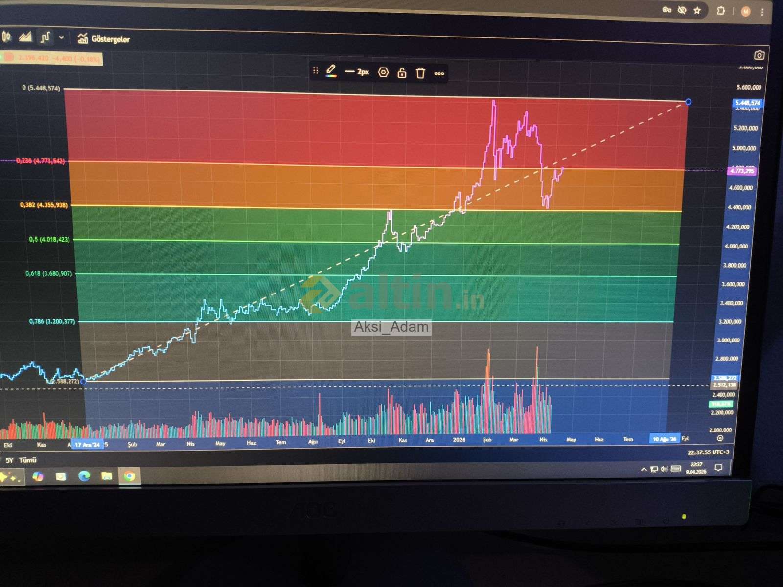 Başka bir açıdan bakınca şuan fib. 236da 4.770 dolarda direnç görüyor.