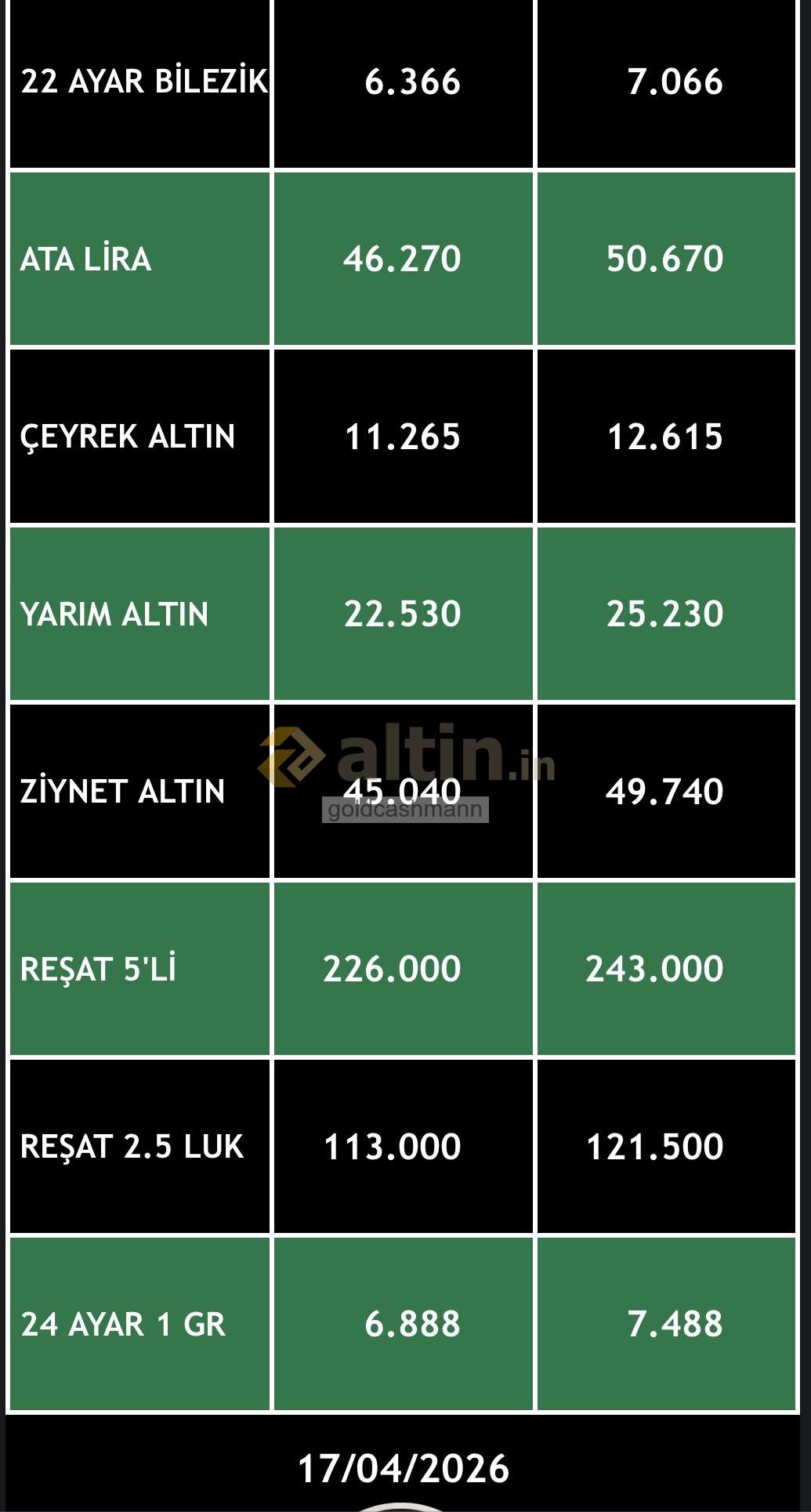 goldcashmann ()Konu: Anlık kuyumcu fiyat listesi ekranı KOCAELİ