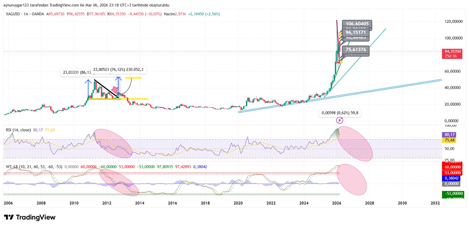 battıbalık ()Fiziki hangi noktada avantaj sağlar? Finansal sistemin çökmesi durumunda iç savaş ve savaş durumlarında. Bankamatikten ve bankadan para çekilemeyecek tüm durumlarda avantaj sağlar. Uzun vadeli olduğu için fiziki tarafındayım. Örnek herhangi nedenle hesaba bloke gelsin. Nakit sıkıntısını fiziki satışı ile çözmek mümkün olur. Bir ihtimal vadeli işlemler ve fiziki fiyatın ayrışması bu noktada avantajına var. Uzun vadede fiziki tercihim benim. Talep düştüğü için naz yapıyorlar. Benim gördüğüm sanayi metalinden yatırım aracına ( para ) yönü ağır basacak. 2030 belki 2035 yılları arasında 2 zirve daha yapmasını bekliyorum. Bir sonraki zirvede çıkıp alttan almayı deneyebilirim. Tabi ki fiyatda ayrışma yoksa piyasada bulunuyorsa yaparım. 3. Zirve ben çıkarım. Bu ilk zirve silkeleme 2. Zirve milletin bitti dediği yer olacak. Geri çekildikten sonra geleceğini düşünüyorum.