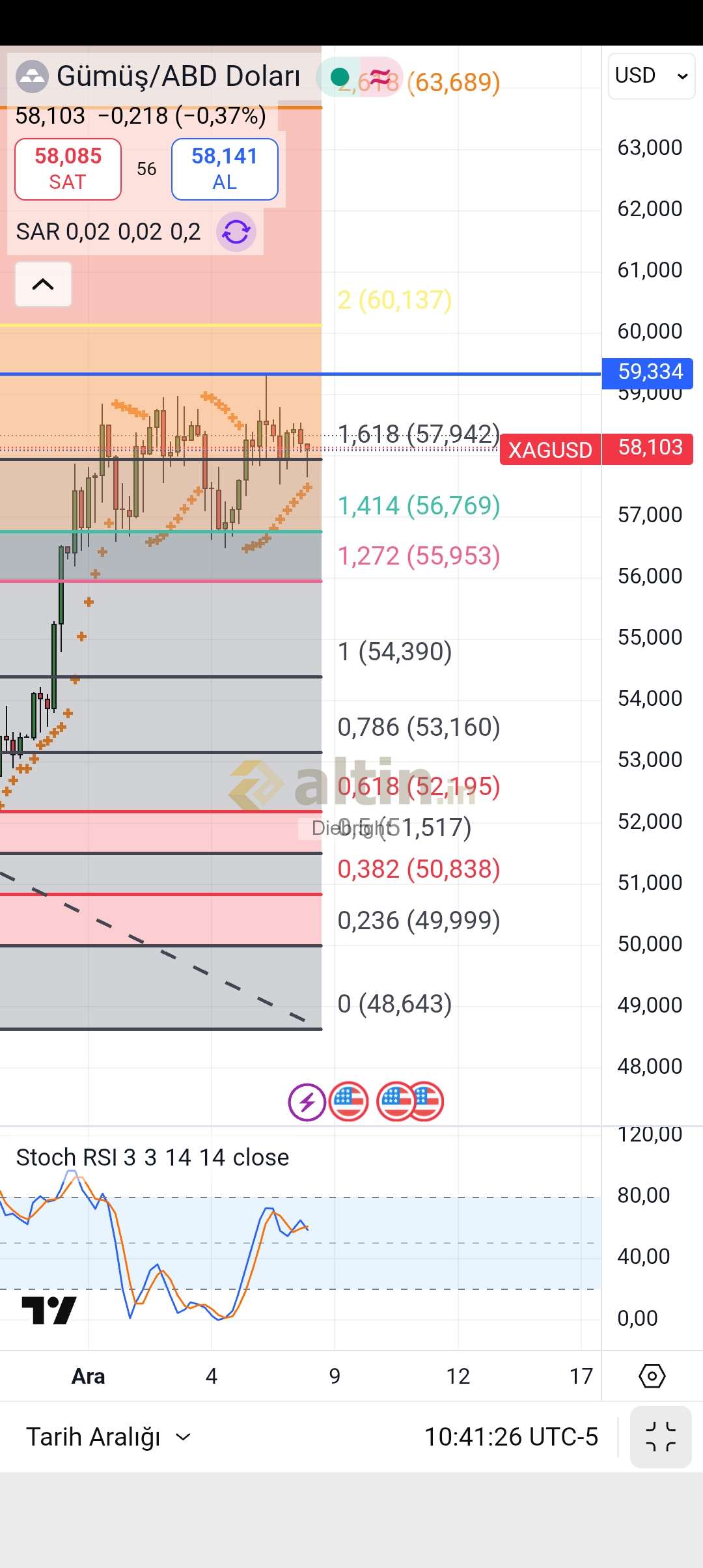 Rasyo ve ons gümüş en kritik yerde olarak haftaya başlayacak. Rasyo :72 ons 59 bölgesi.