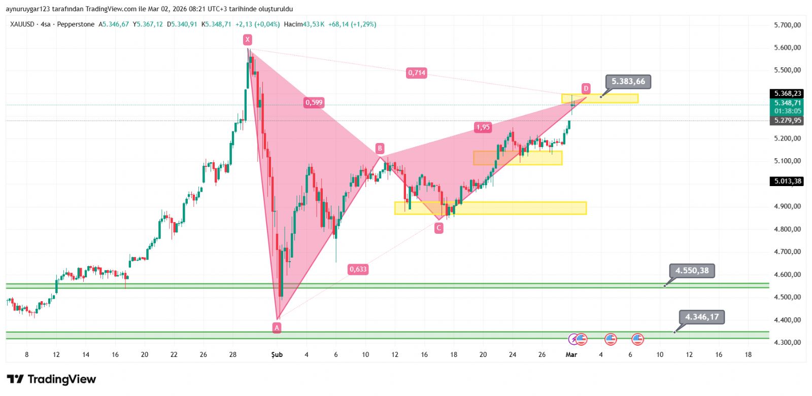 Aynur1 ()Konu: xauusd xabcd hedefe gelmiş ytd