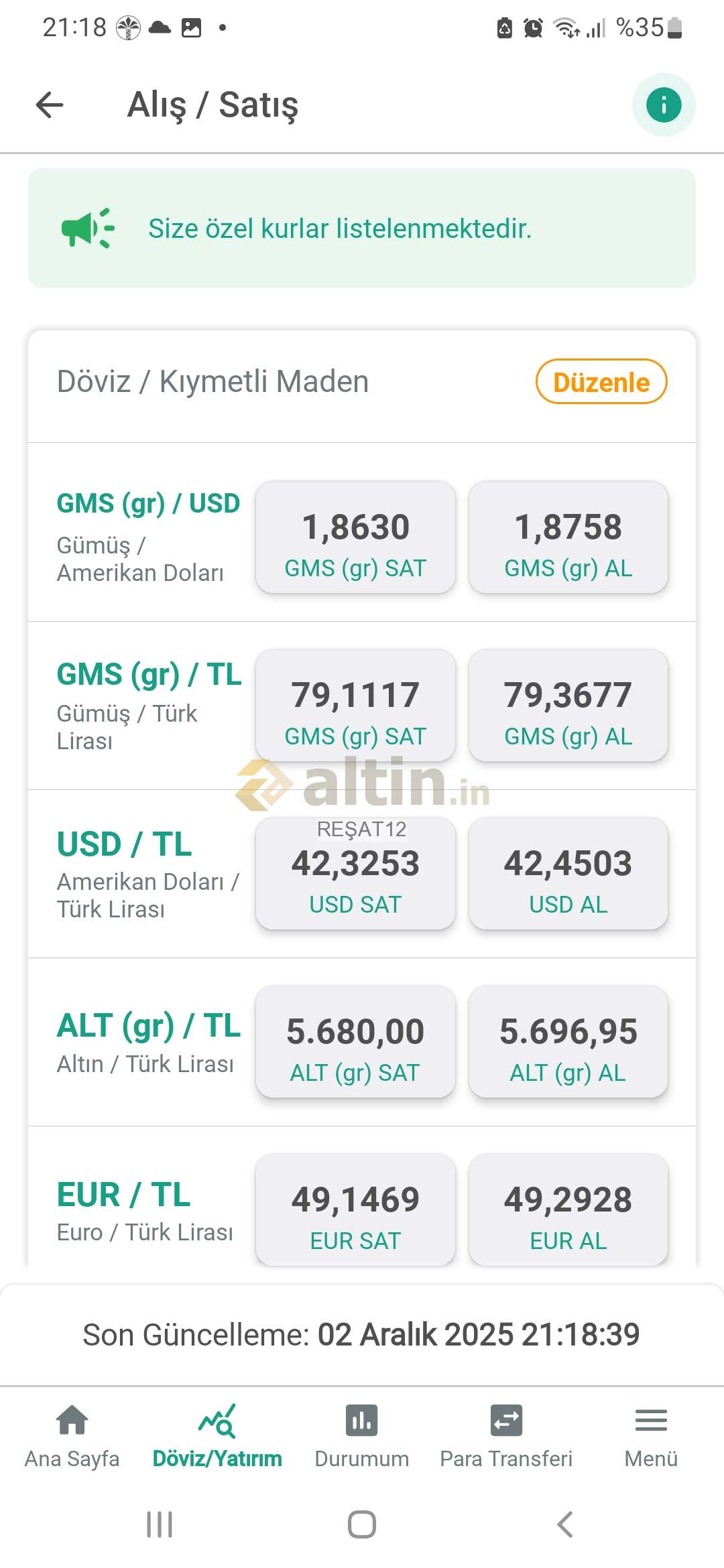 Parite normal kurla özel kur aynı.