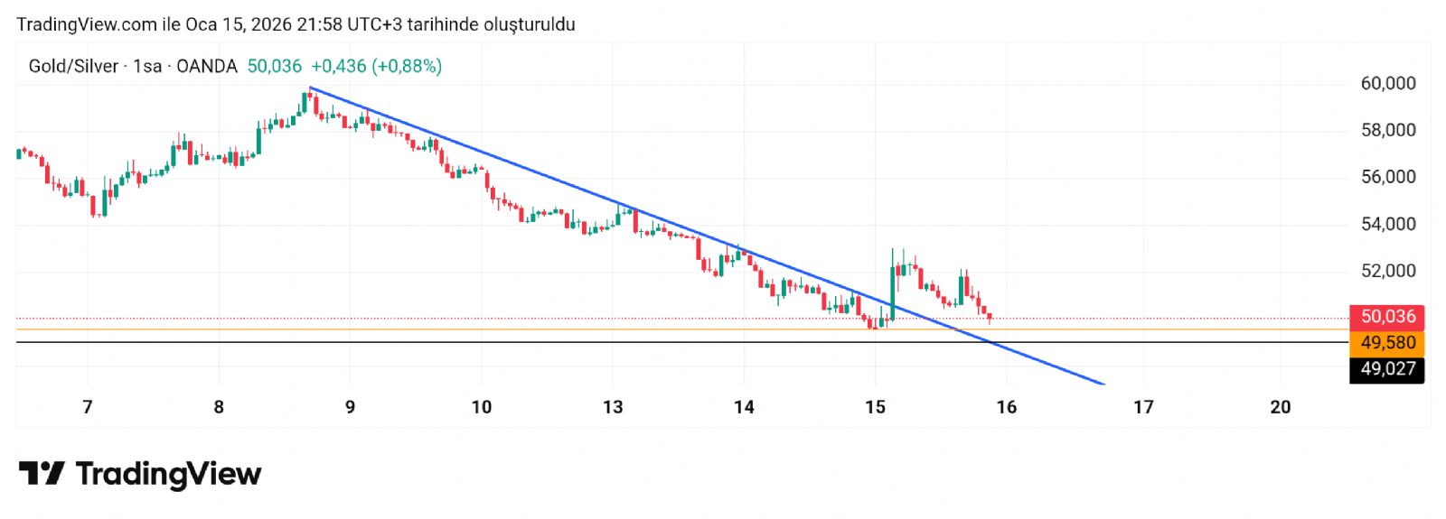 Evet düşeni üste kıran rasyonun trend üstündeki son hali. Anlık 49 hatta tekrar temas noktası. Burası zamansal olarak değişir. Zamansal olarak her geri inişte daha alta değer. Tabi bir kaç defa daha denerse. Belki bir defa temas eder devam eder üste.