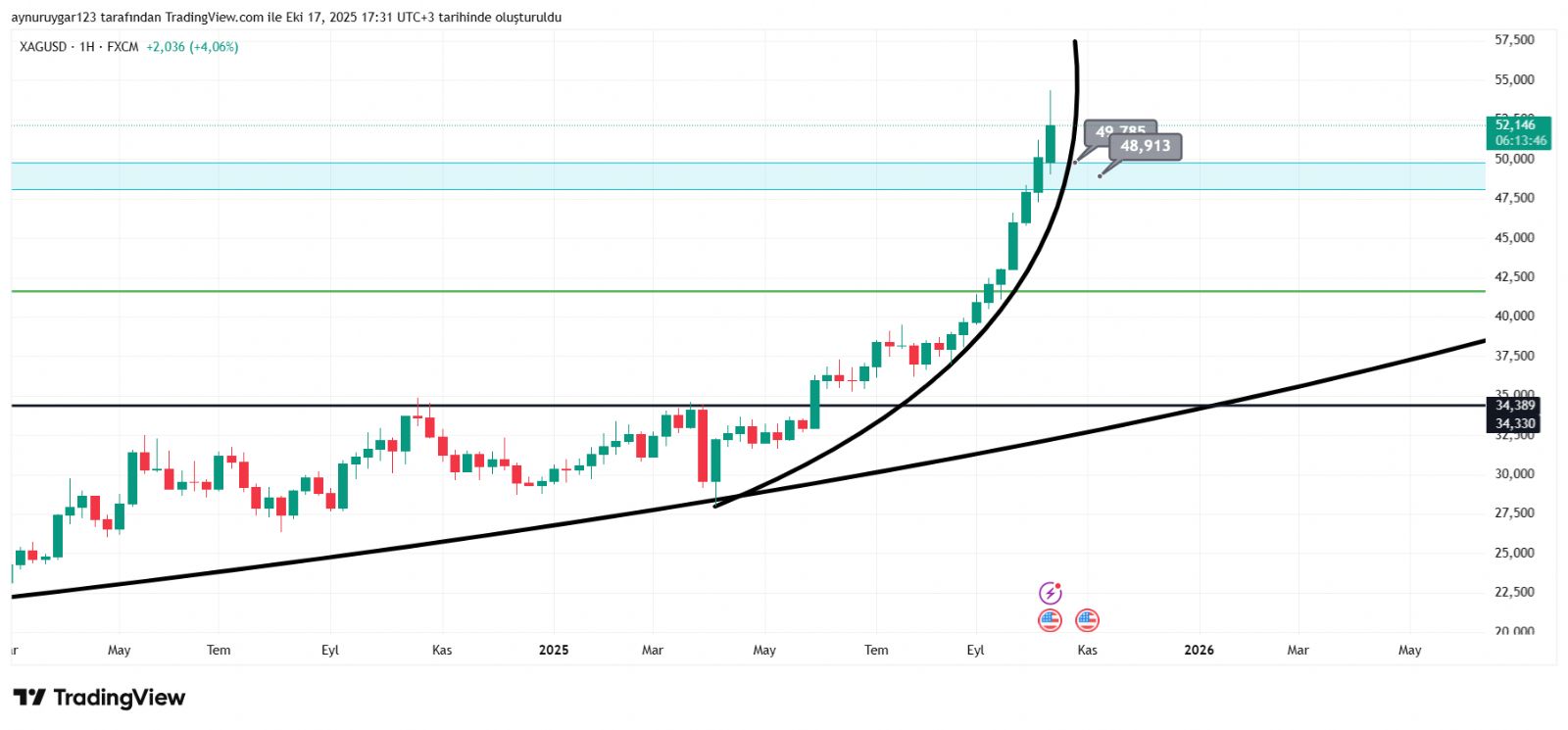 Hocam yıkıldı ons gümüş güven vermiyor 3 gündür ons altının yapıtıgı ivmeyi yapamadı oyuzden bıraz dğiüşğş olsa gümüş yıkılıyor