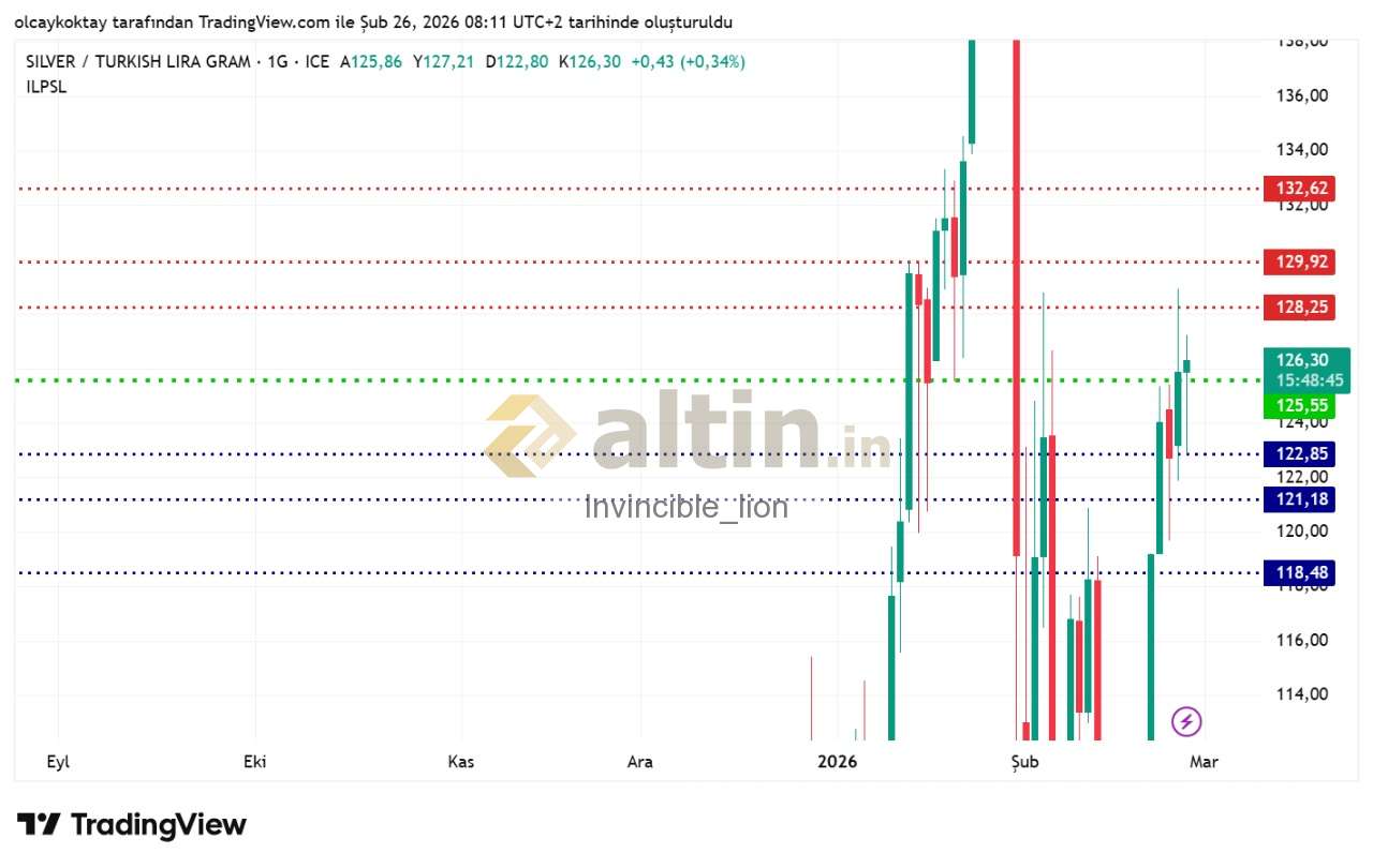 gümüş gram tl günlük pivot 125.55 destekler 122.85 121.18 118.48 dirençler 128.25 129.92 132.62