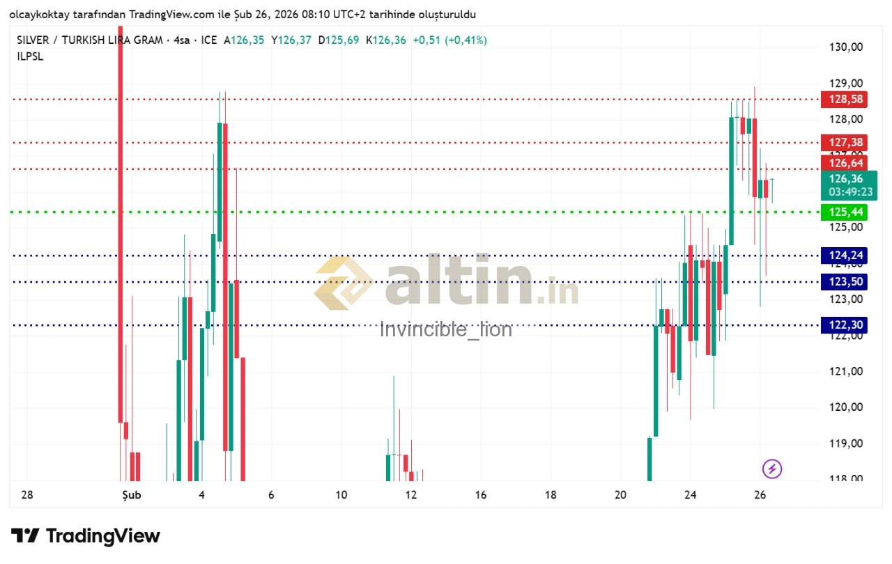 gümüş gram tl 4 saatlik pivot 125.44 destekler 124.24 123.50 122.30 dirençler 126.64 127.38 128.58