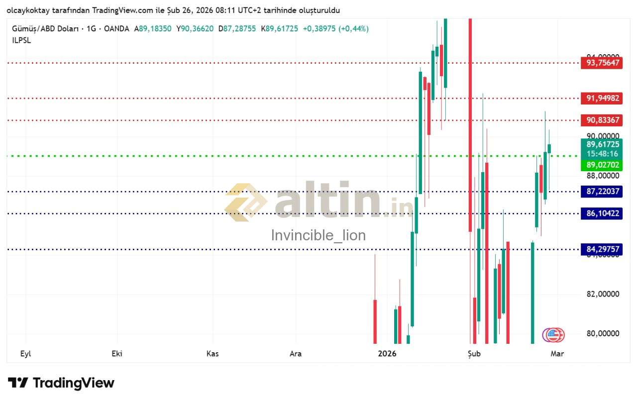 gümüş ons günlük pivot 89.02 destekler 87.22 86.10 84.29 dirençler 90.83 91.94 93.75