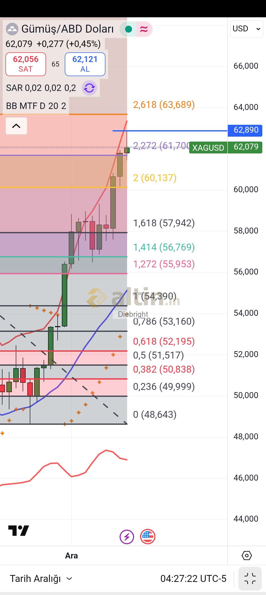 Pazartesi günü itibariyle yeniden 63, xx 64, xx denemesi gelebilir ve bu sefer 64,66 nın altından tekrar satış başlatılıp 60,81 ı tacize gidebiliriz. Özellikle salı gününden itibaren aşağıda 59,32 yi görebiliriz ve basit bir matematik ile 60,81 yerine 59,32 gelecek ise aradaki farkı 64,66 dan tahsil edebilir yani tepe rakamımız 63,17 olabilir. Yani pazartesi günü 63,17 gelirse satış vakti gelmiş demektir.