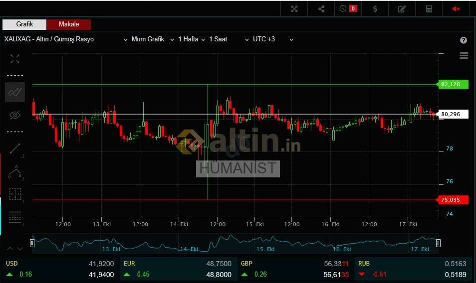 TUĞRA44 ()Rasyo 77 den 80 81 e kadar çıkıp yatay kaldığı halde ons gümüş zirveden sonra devam etti yoluna buda rasyo kaynaklı değil ons altın kaynaklı bir çıkış oldu demektir arkadaşlar. Ons gümüş çıkışı rasyo düştüğü için değil ons altın çıktığı için oldu. Sağlıklı olan ons gümüş çıkışı rasyo kaynaklı olursa iyidir ons altın ile çıkan ons gümüş normalde iyi değildir.