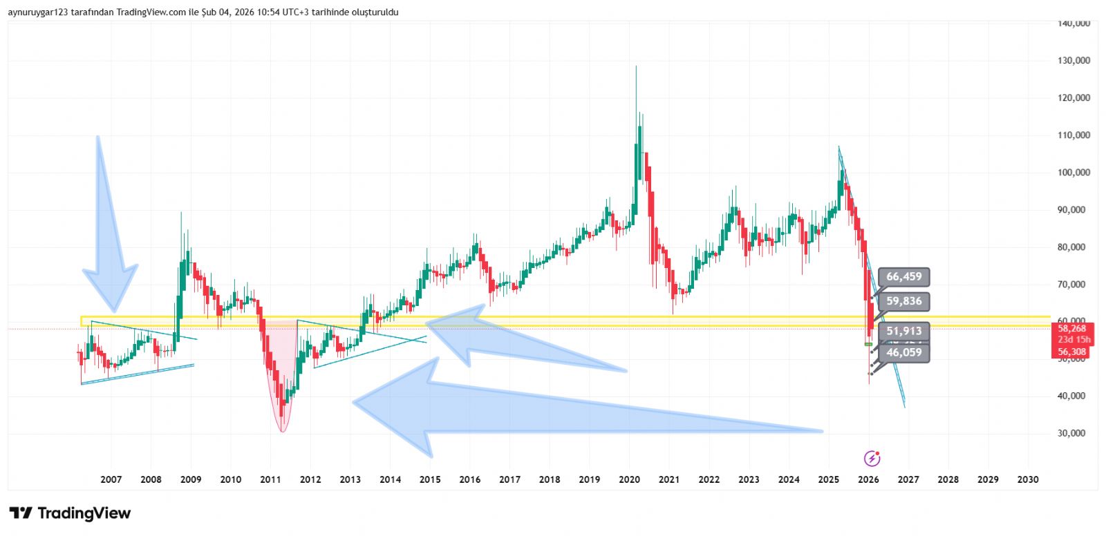 2006 dan 2013 e kadar 59 önemlı destek direnç olarak kalan yer ..2013 den sonra ilk kez 59 altında 2 ay kalabildi ...