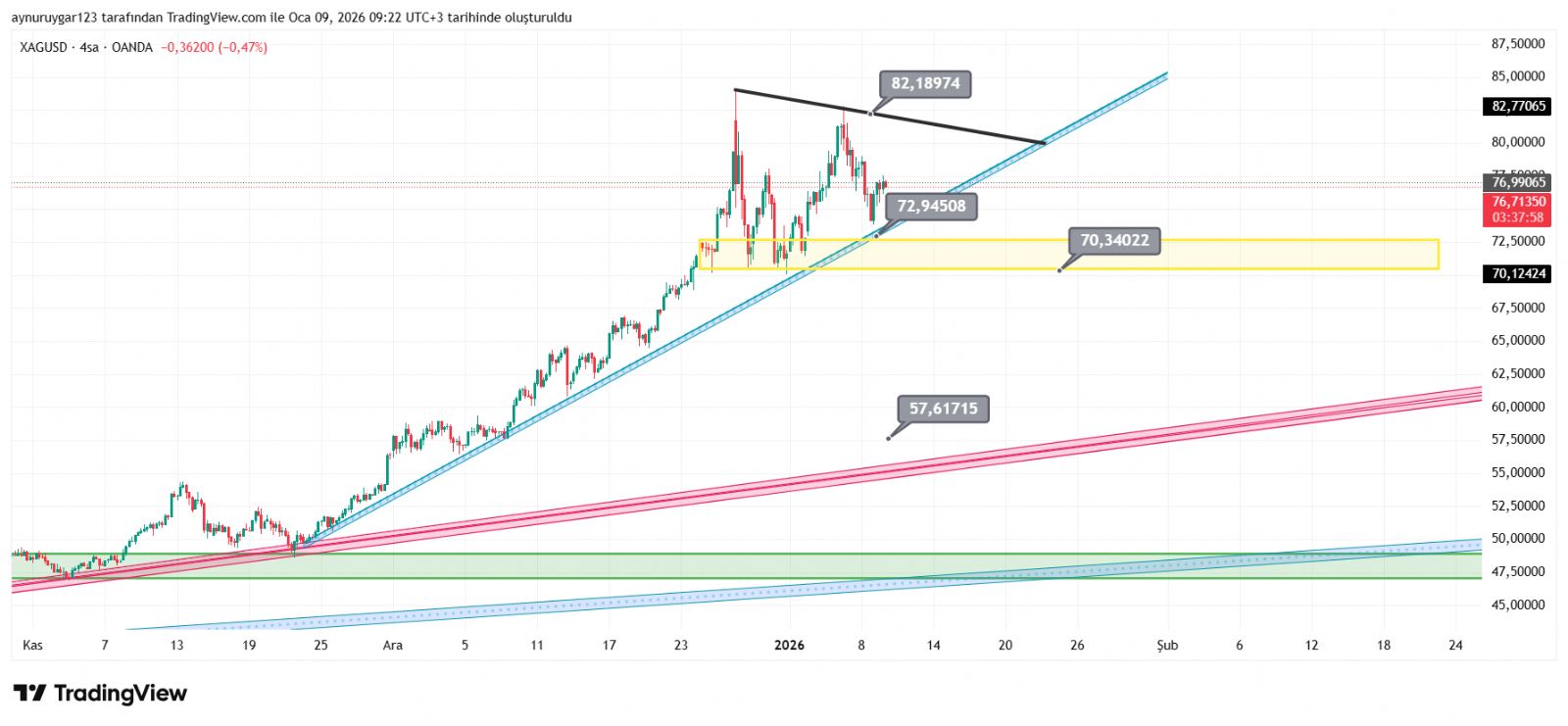 Diebright ()Gümüş ons 4 saatlik mumlar çok zayıf. Bir türlü hacimli yükselemiyor. Bugün TDİ verisi var bir hareket getirir. Gece 75.5-77.5 usd arasında kısa sürede bir hareket etmiş. Onsun 75.95 usd aşağısına düşmemesi gerek.