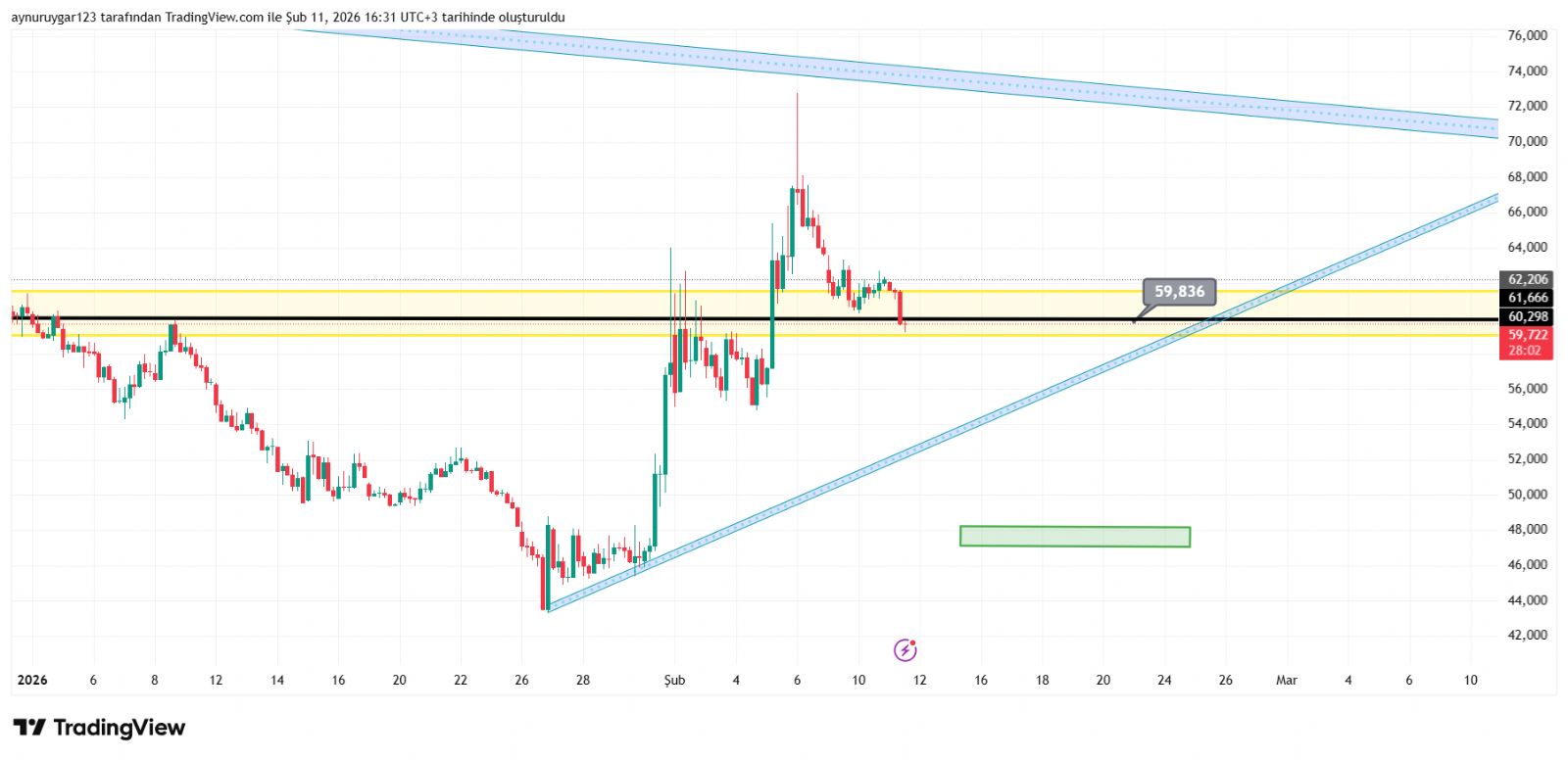 siyah ve sarı çizgimin altinda kalsın 60 altı ..haftalık ve bu ay sono aylık kapanış 60 altı olması önemli