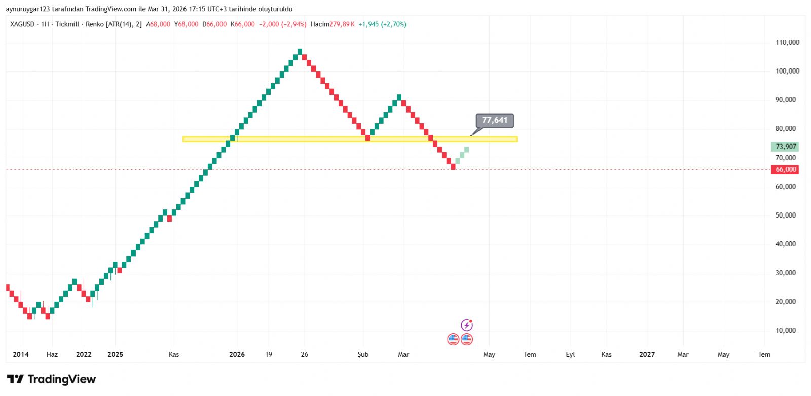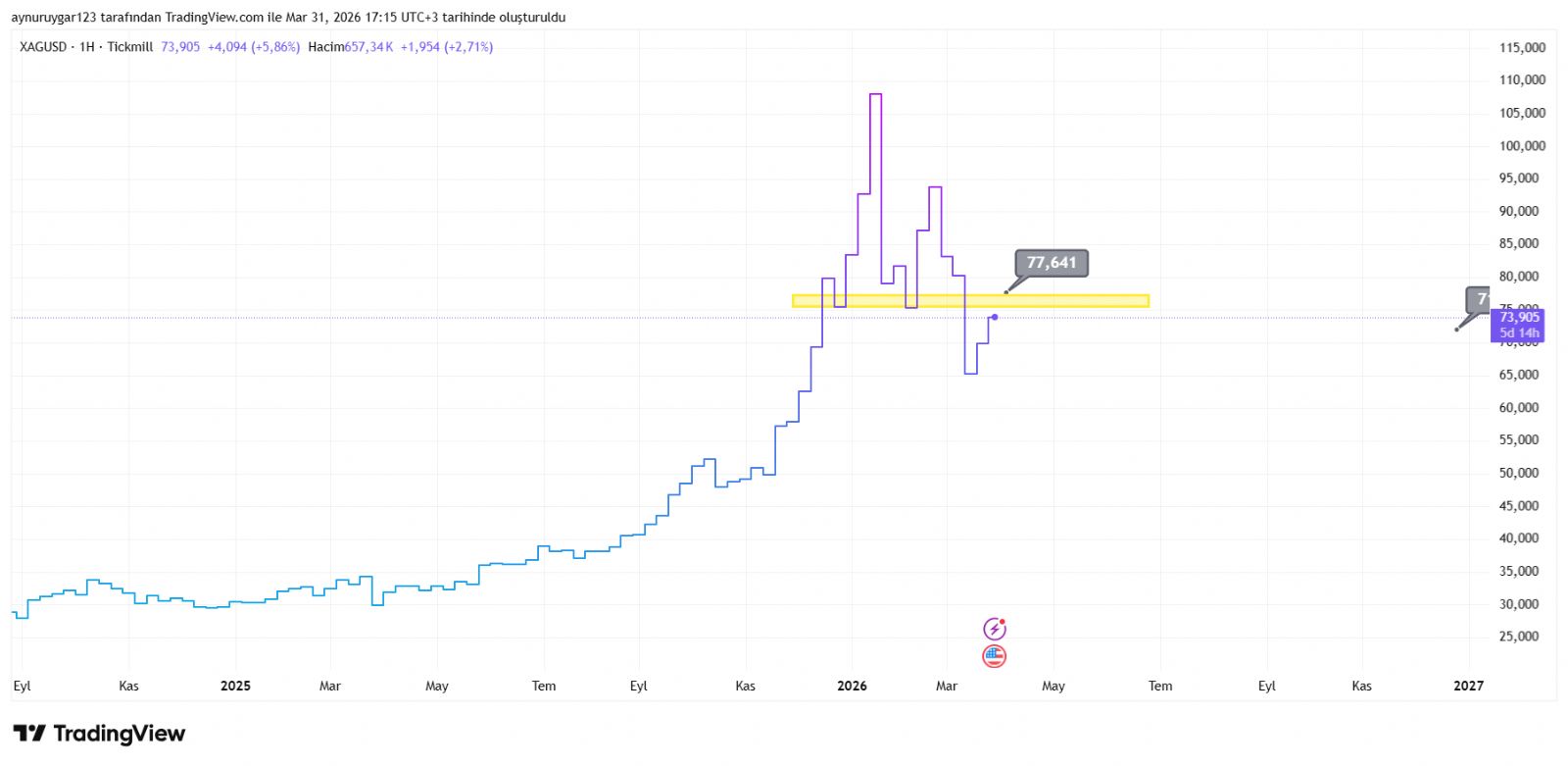 paravarhuzurvarr ()Ons dolar 74 76.50 80 bölgelerde kısmi kâr çıkışları yapıp olası duruma hazırlıklı olmayı planlıyorum