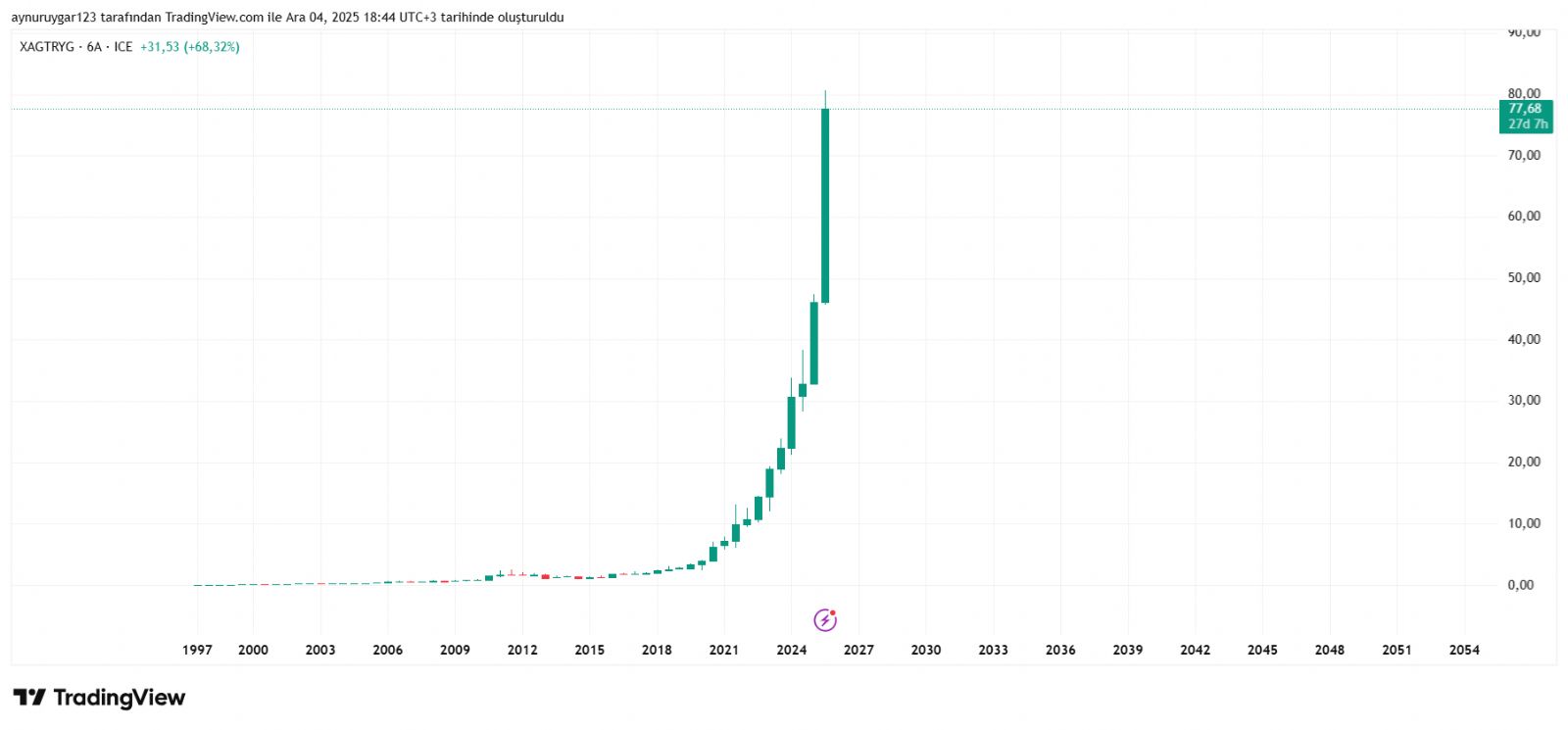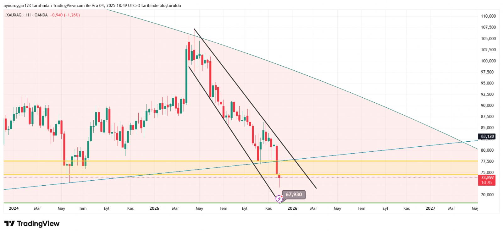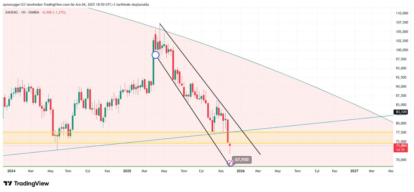 gerçekten kaçınılmaz . hep dikey yükselmez .. şansimiza 3..4 senedir gümüşün yükselişine denk geldik .. bunun düşüşü düşüş trendide olucak
