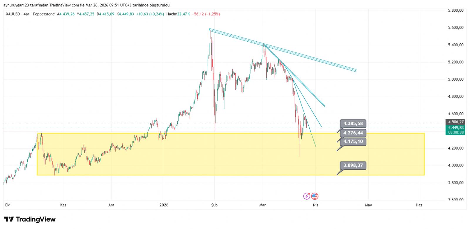 Seyhanefe ()Evet şu an için tutundu 4420 usd. Aşağıda 4382 yukarıda 4500 usd.