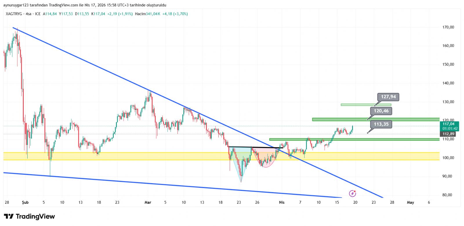 116.83971 den geri alım firsati vermezse son parcami sattım % 70 lik gümüşe dokunmadım haftaya yukarı devamı halinde kademeli kâr almaya devam insaallah. Iran ateşkes suresince Hürmuz acık dedi ateşkes suresi dolmak üzere. Ytd.