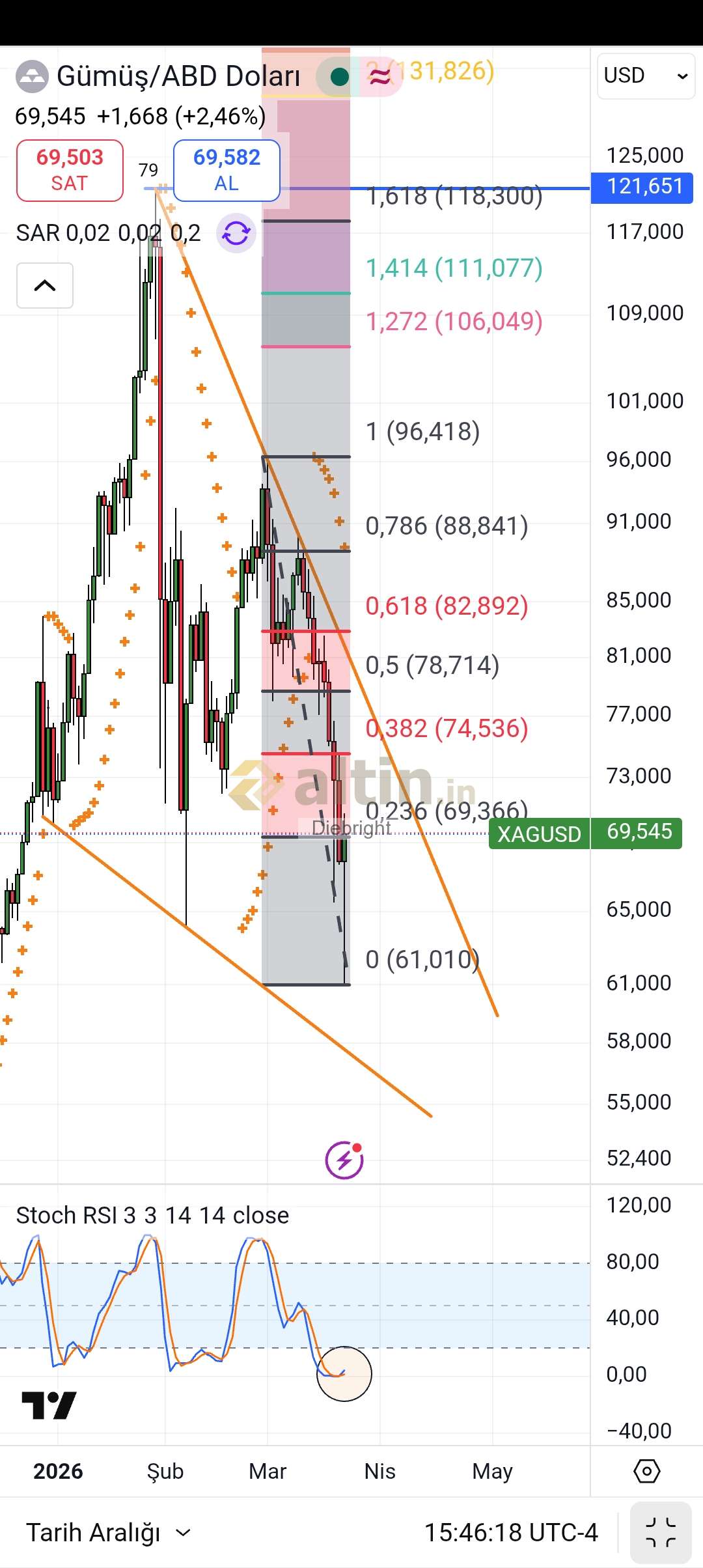 Diebright ()Evet 4 saatlik gösterge yine şişer 74.54 usd civarındaki önceki tepe aşılmaz ise olabilir. Sabah çok güzel yerlerden aldım. 60 usd bekliyordum 61 usd geldi. Maalesef 3.5 kg alım yaptım. Tüm göstergeler dipteyken risk alınabilir bir seviye idi. Ful girsek epey iyi kâr gelecekti. İlk dediğim şartlar olursa yine 60 dolara yakın test edebilir. Ben onslarda uzun bir sure bu tarz al sat hareketlerinin devam edeceğini düşünüyorum. Fırsatlar çok gelecektir.