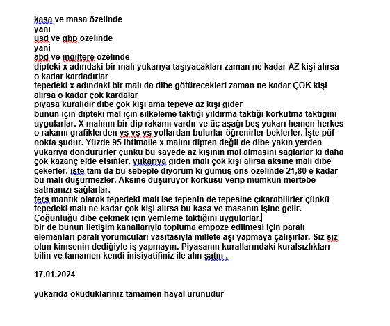 Hayalet_adam ()Bütün özeti burada geçtim. Ons gümüş 51 50 gelecektir dedim daha sonraki yorumlarda ve buralara geldiğinde 1 kademe alımı hakeder dedim dostlar. Yalnız hareketli bir piyasa var ve elde nakit bulunması gerekiyor alım bir parça ve ufak olsa iyi olur diye düşünüyorum. Düşüşün ilk seviyesi 50 51 seviyesi bana göre ve ilk seviyeden mi destek bulur yoksa daha alta mı iner destek bulur bunu tam bilmiyorum ama 47 48 e kadar uzanma durumu da olabilir. Önceliğimiz 51 50 kanalını kullanmak al sat için. 54.3 4 gibi satış olmuş olsaydı şimdi alttan ekleme fırsatı olurdu onun için diyoruz ki malı sürekli elde tutmanın bir anlamı yok al sat yapılacaksa eğer. Tercih meselesidir tabi bize göre böyle size göre nasıl bilmiyorum.