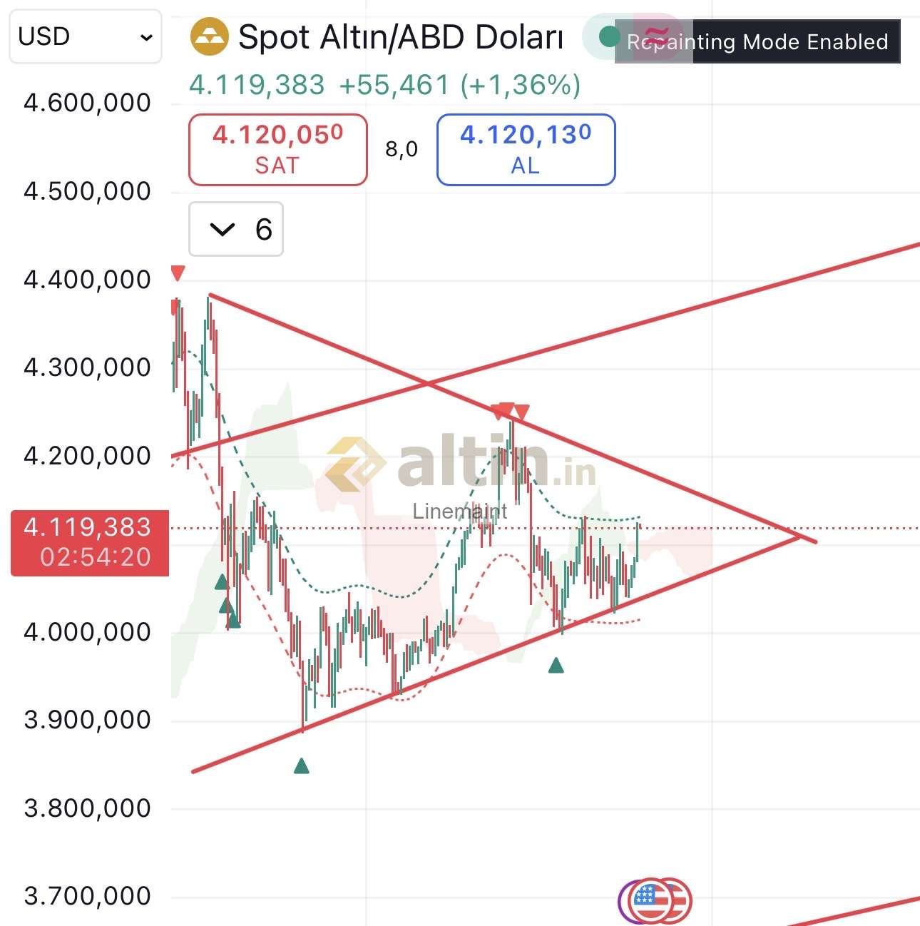 dataelektronik ()Benim bir aydır ons gercek değeri 3500 3750 civarı diye tahmin ediyorum ama herkese ters geliyor işin enteresan tarafı herkes yüksek yükselecek dediklerinde vurgun yiyorlar :)