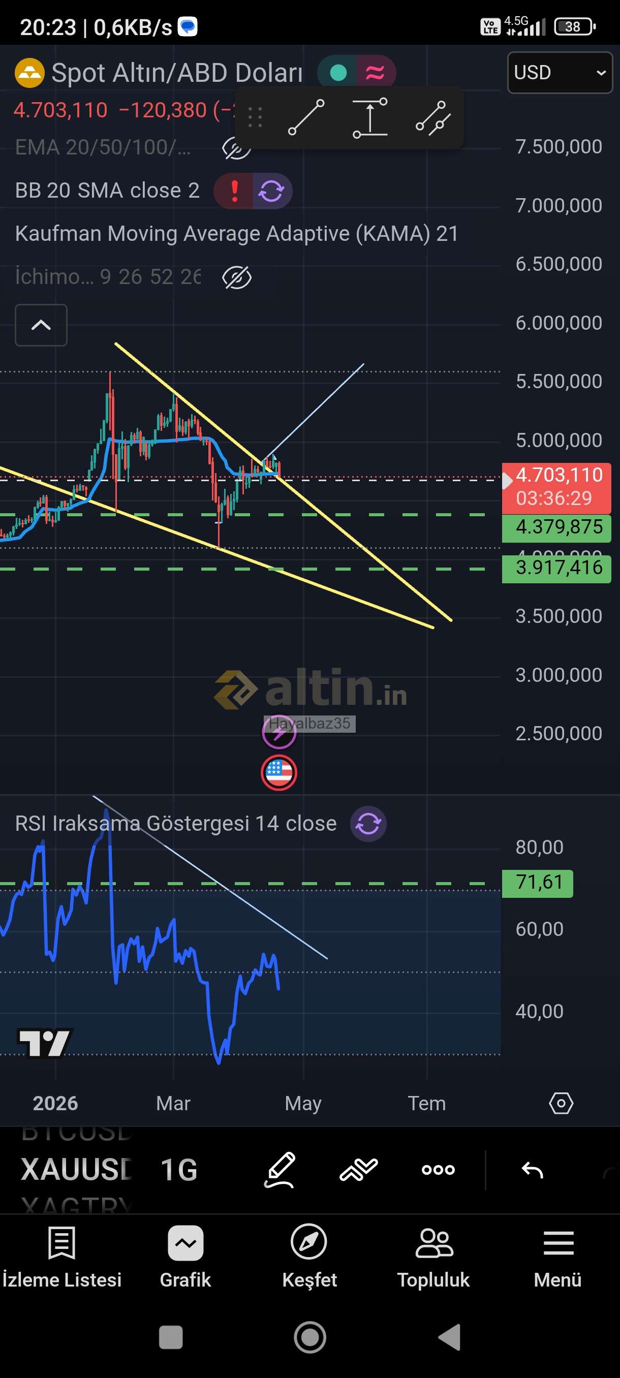 Mehmet2018 ()4720 üstünde kalıcı olursa biraz alınır olmassa 4660 yada 4605 güçlü destek olarak görünüyor ama kirarsa panik satislar başlar asgida çok boşluk var ytd