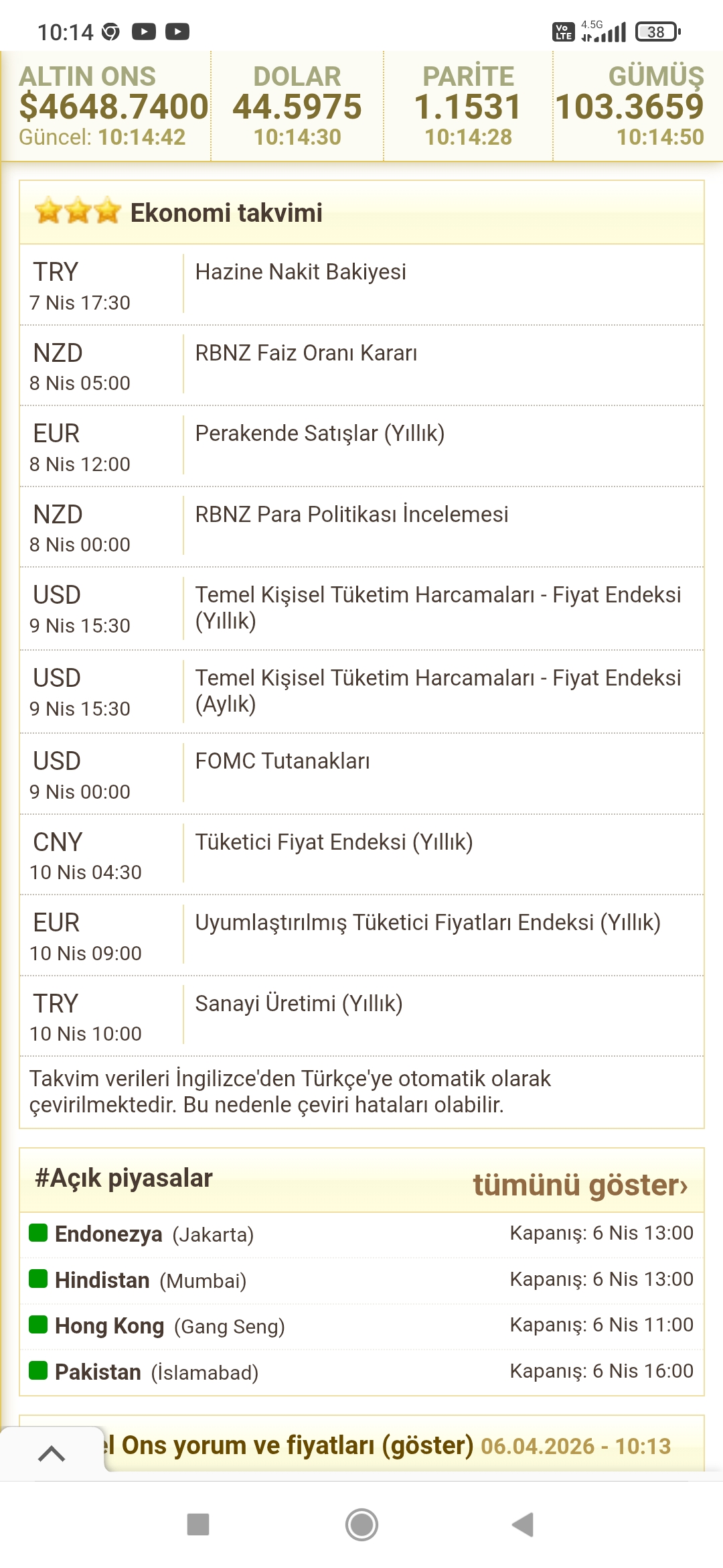 Kayserimanisa ()Paskalya dolayısıyla avrupa ve abd bugün de kapalı. Yarın normal piyasaya geçiliyor. Şu an ki hareketler aldatıcı olabilir