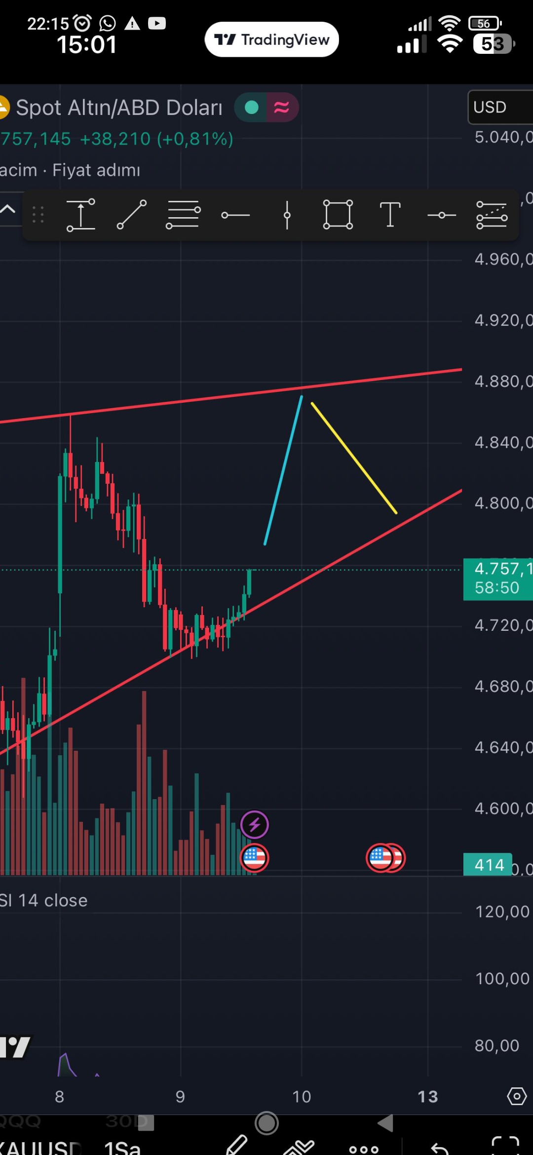 Telafi_ ()Ne desen doğru. Temelle örtüşen çizimler her daim daha haklıdır. 4822 üzerine deri çıkardıklarında Fomo ile 5000 atıp bu gece 00.00 ve yarın ki 15.30 verileri bahane edip bir tokst atacaklsr diye düşünmüştüm. Yanıldım