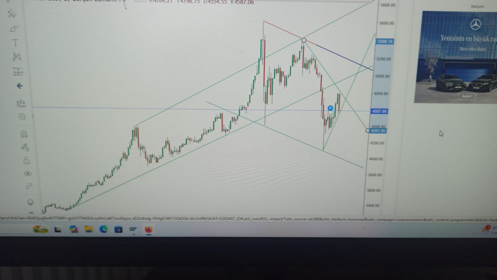 Kayserimanisa ()Onslarda yükseliş trendi sona erdi. Tepkiler de yavaş yavaş azalacak. Yani ben buradan toplar bir ay sonra 5600 den satarım diye düşünen arkadaşlar topa hiç girmesinler. Beklenilen tepki yükselişlerinden kısa vadede faydalanmak isteyen arkadaşlara sözüm yok. 4700 üzerine atıp tekrar geri döneceğini ve 4650 cıvarında kapatacağını düşünüyorum. Elbette yanılabilirim