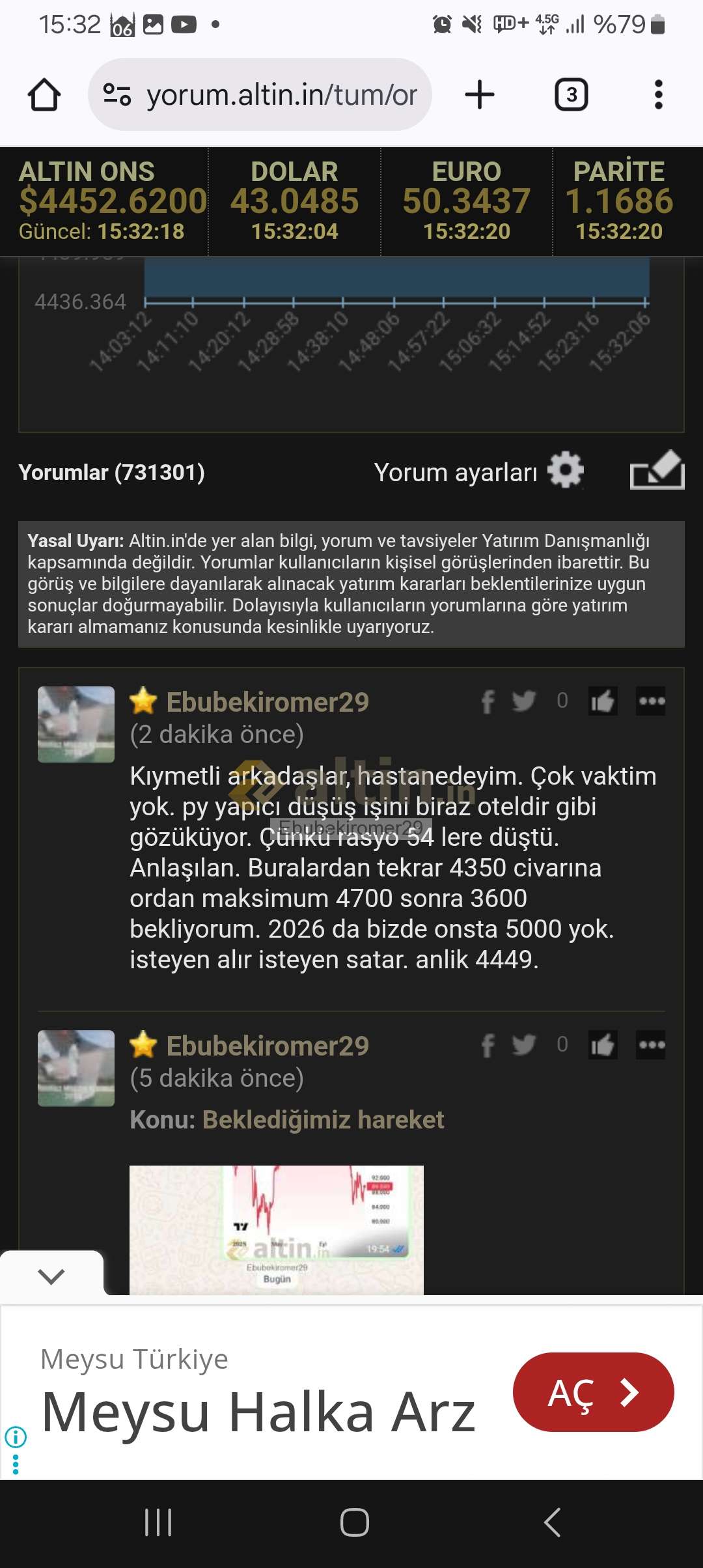 mexido ()Bir yerden almak lazim 42xlerden beri takip ediyorum 41xx 40xx e dogru geri gelsin dedik bekledikce yukari gitti. Alirsin duser, almazsin yukselir. Kestirmek zor ne biraz sans nasip kismet isi. Yukselecegine inaniyorsan ve al sat yapmayip uzun vade tutacaksan bir yerden girmek sart.