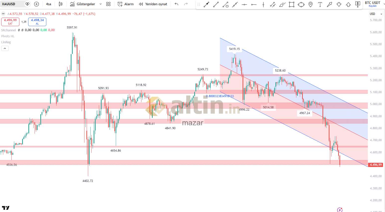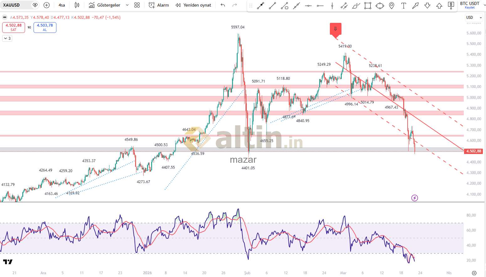 şimdi çok önemli bir noktaya geldi düşüş 4500 usd seviyesi