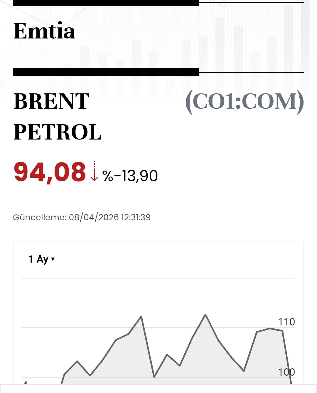 Telafi_ ()Kâr payını alan brente dönüyor gibi. Brent tekrar 94,55