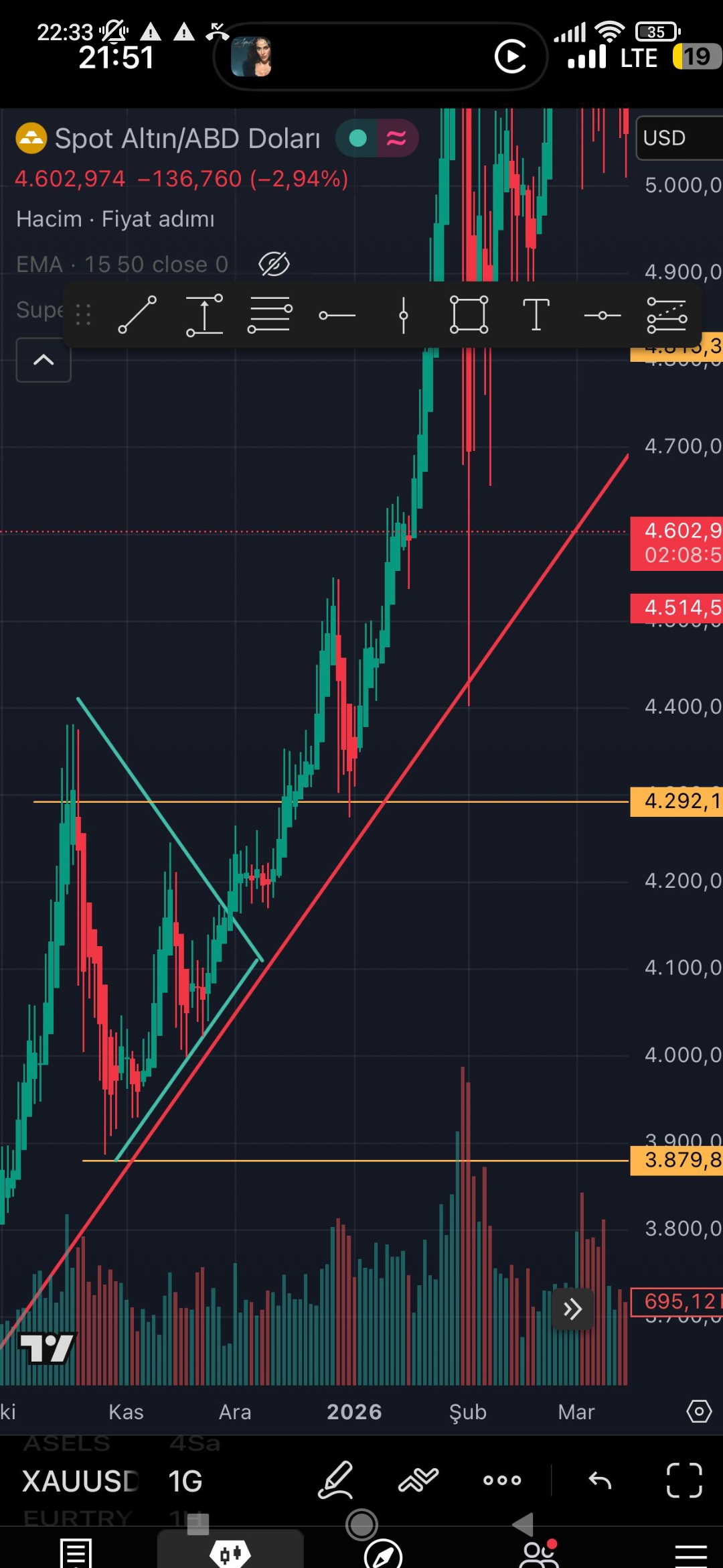 Tekirdağlı_Murat ()4.400 trendin geçtiği nokta değil mi burası kırılırsa çoğumuz üzülürüz herhalde